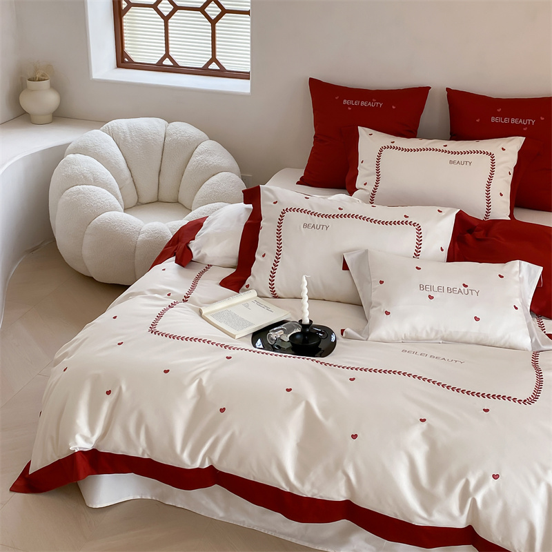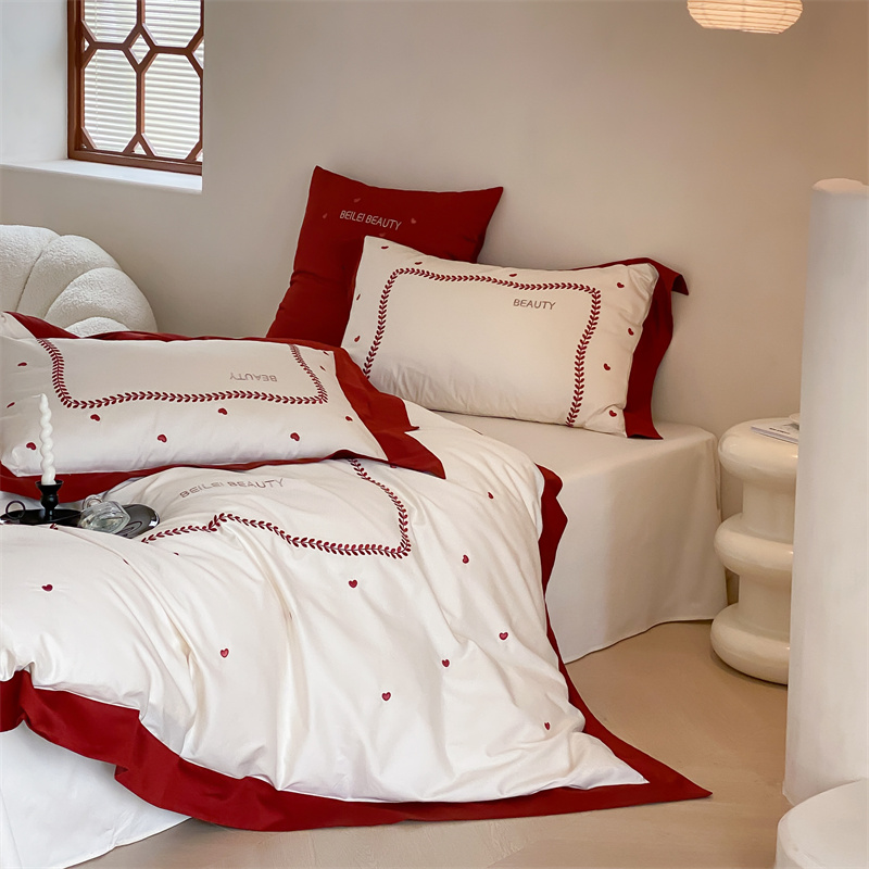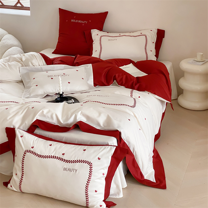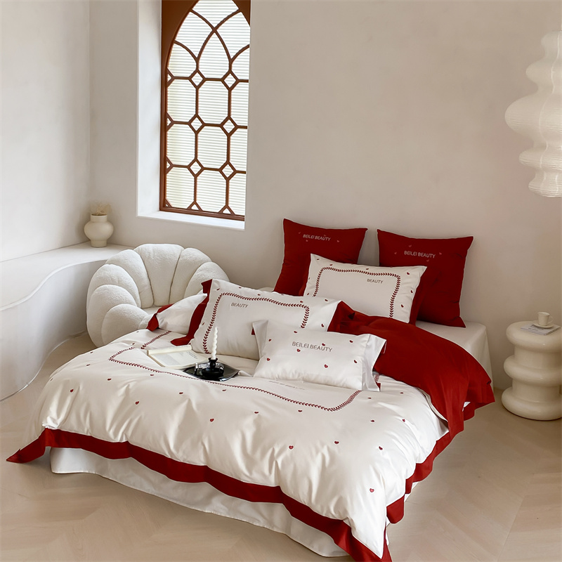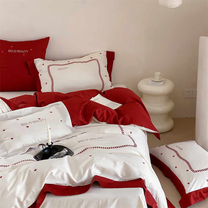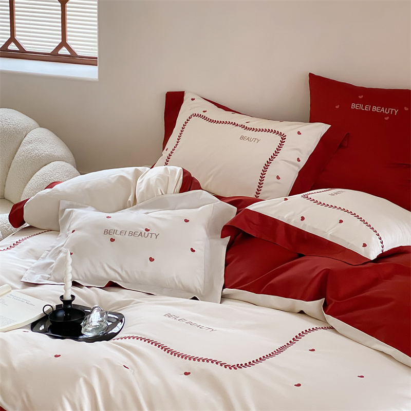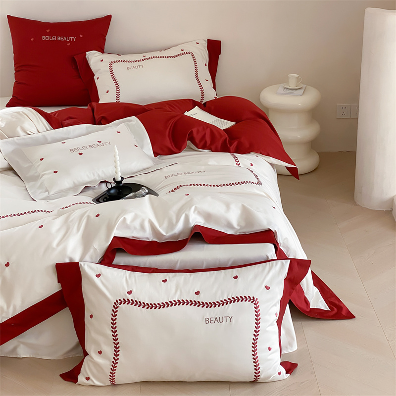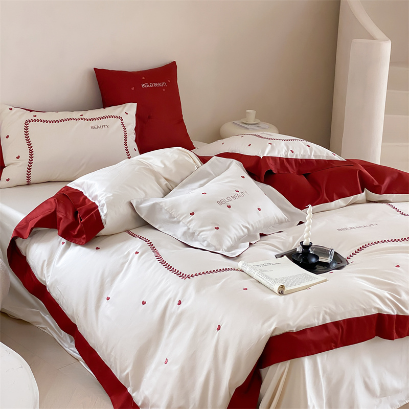 栩裕纺织 2023新款50支全棉四件套 小欢喜-红