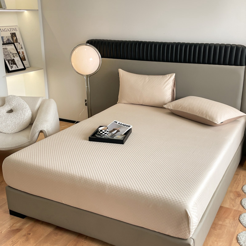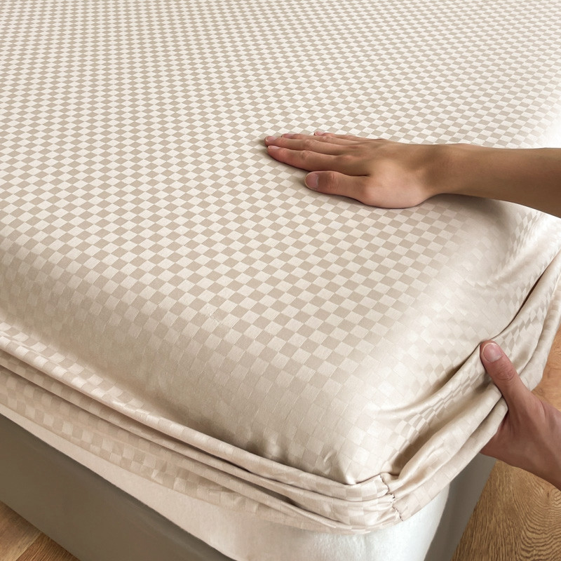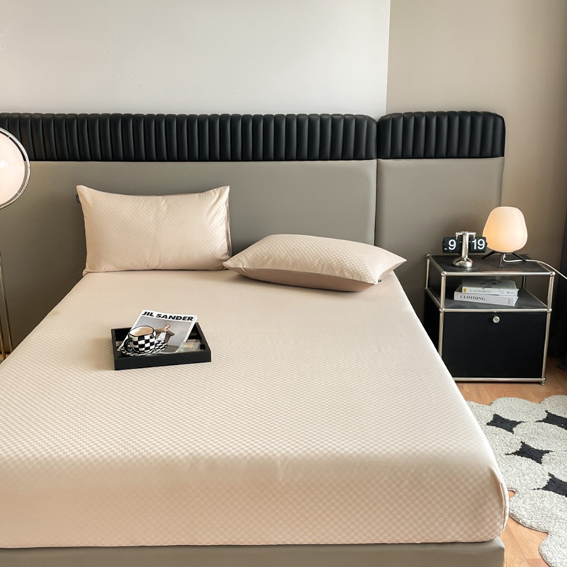 琪格格纺织 2023新款60支长绒棉小方格提花单品床笠和枕套 杏仁