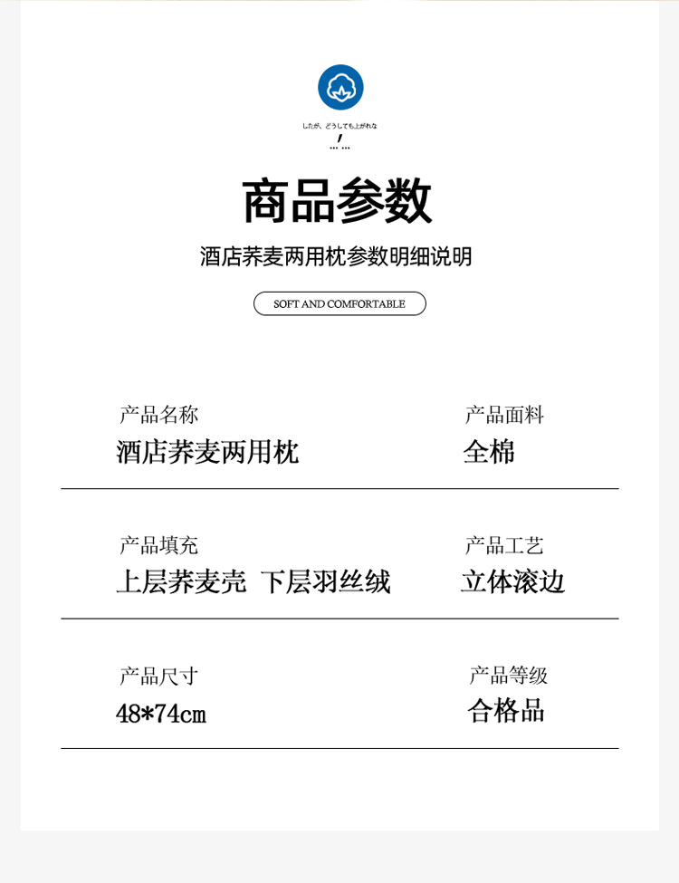商品名称:(总)拾光枕芯 2023新款全棉酒店荞麦两用立体滚边枕头枕芯