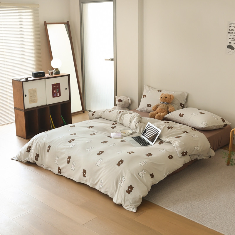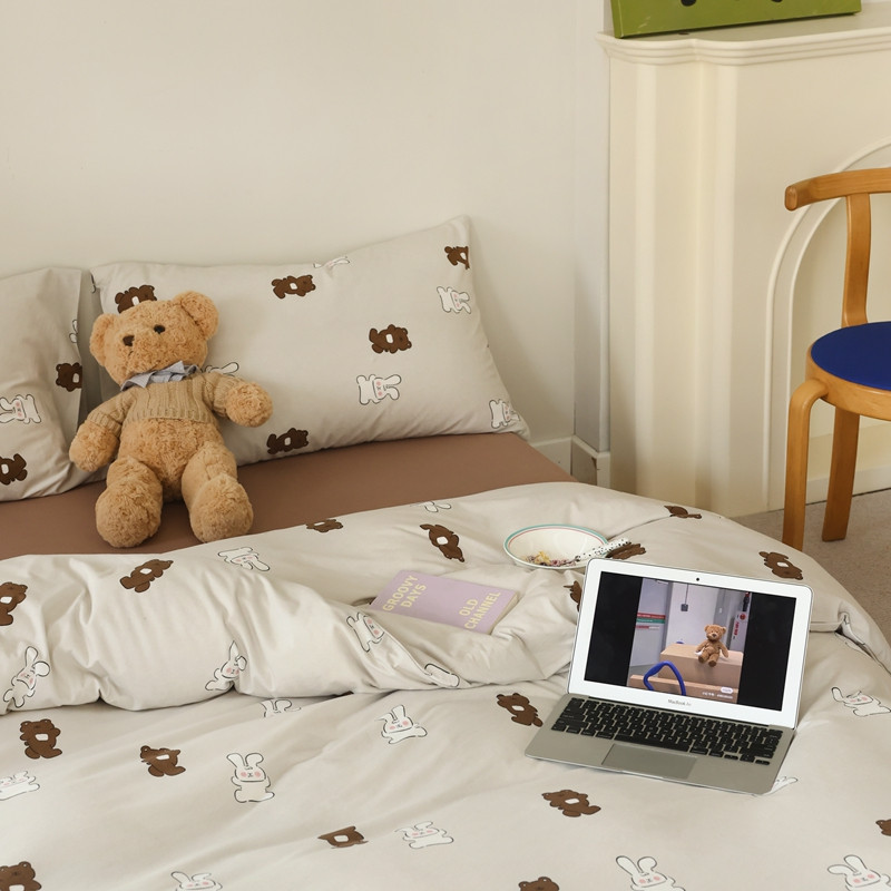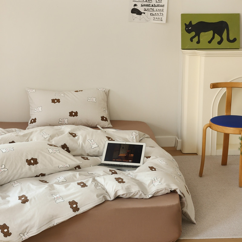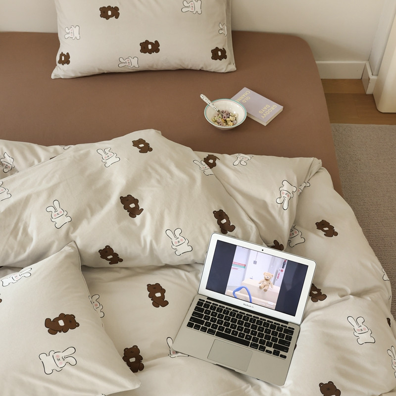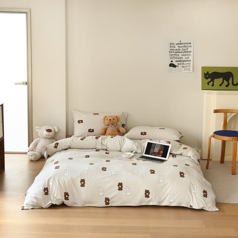 爱丽丝 2023新款全活性印花全棉a类母婴级针织棉四件套 熊和兔