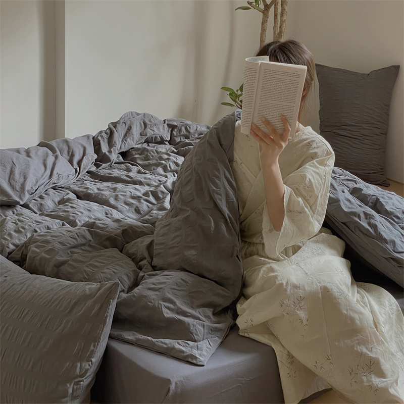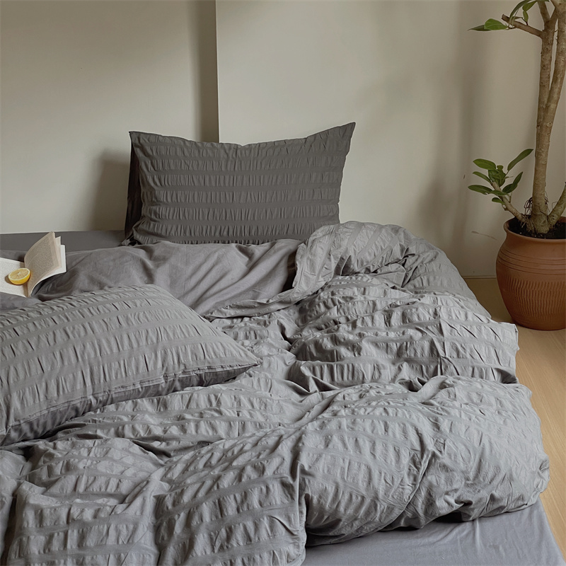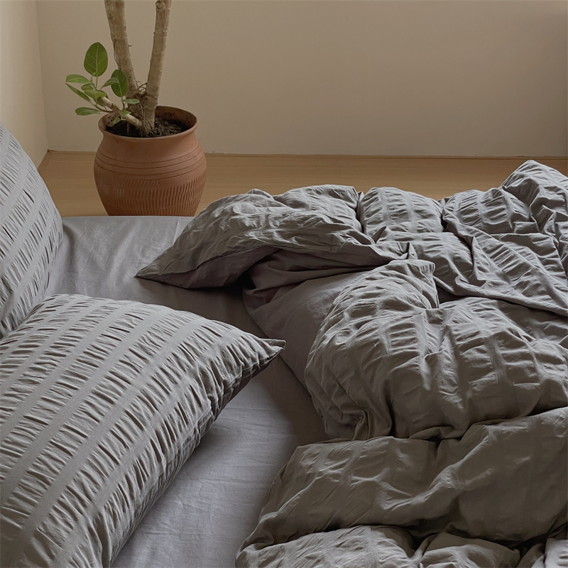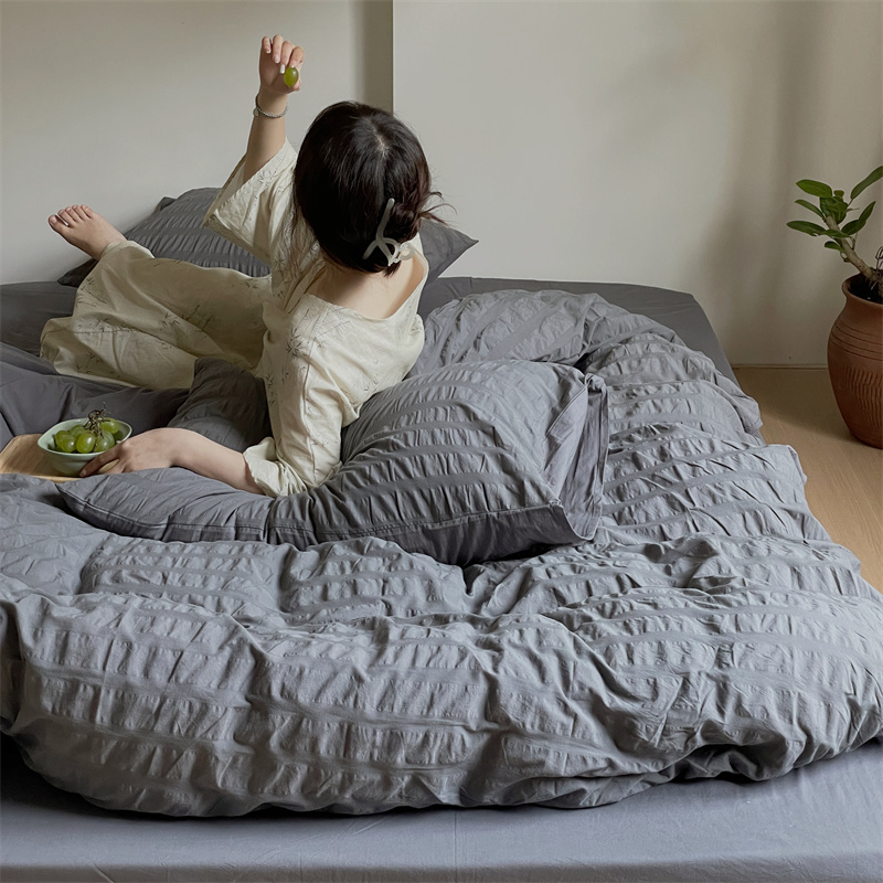 (总)简家居 2023新款全棉纯色泡泡款四件套