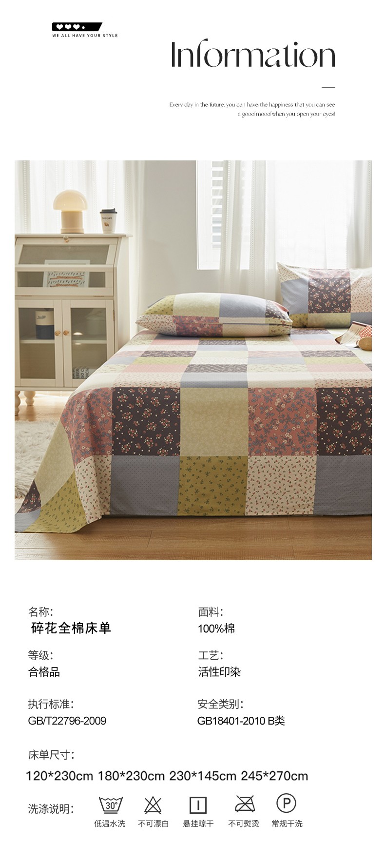 商品名称:绫韵2023新款ins小清新碎花全棉13772精梳纯棉单床单 朗尼