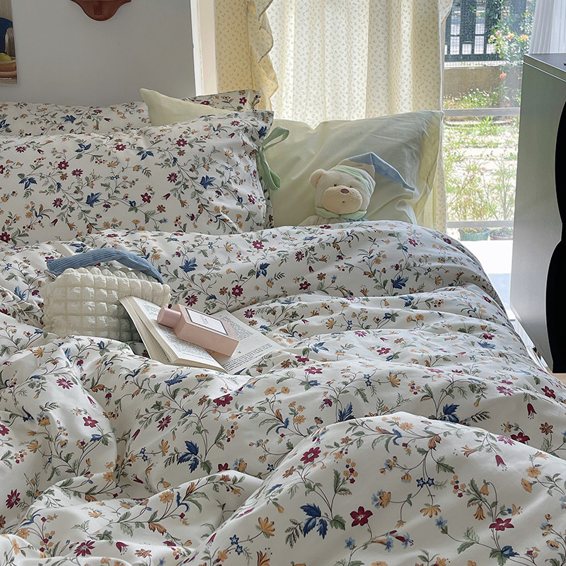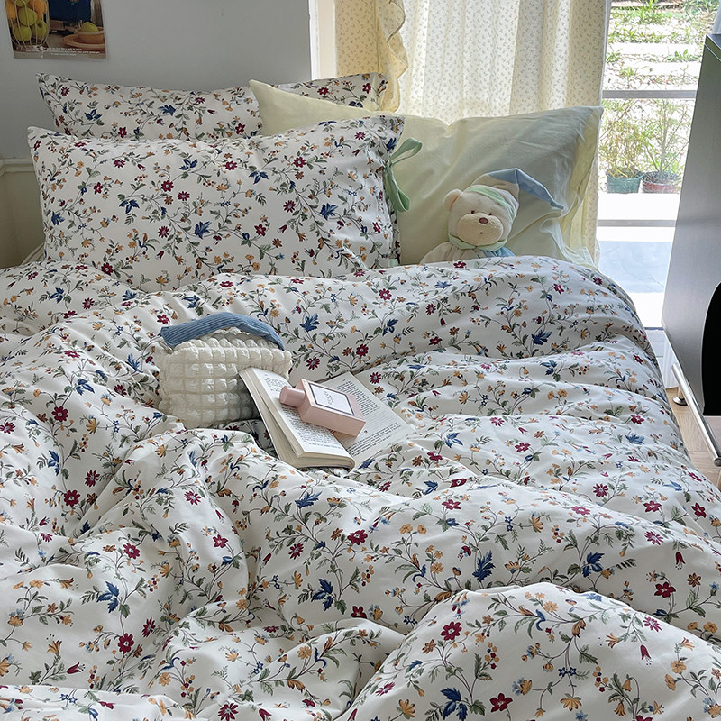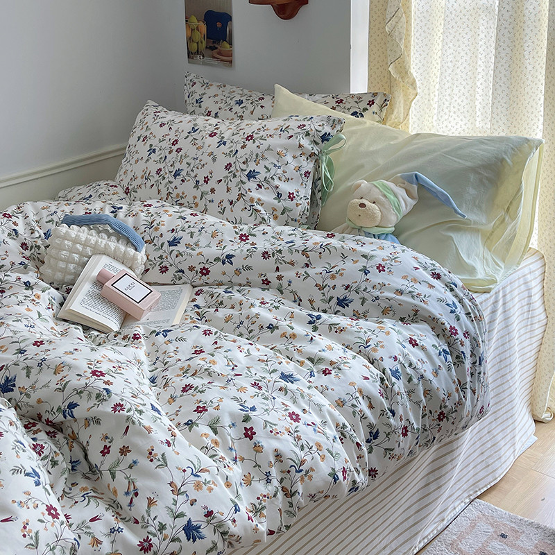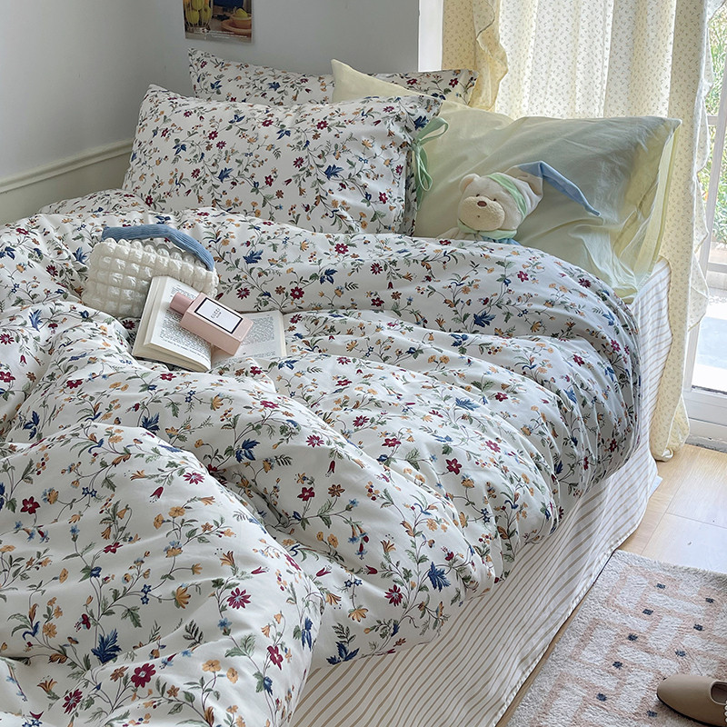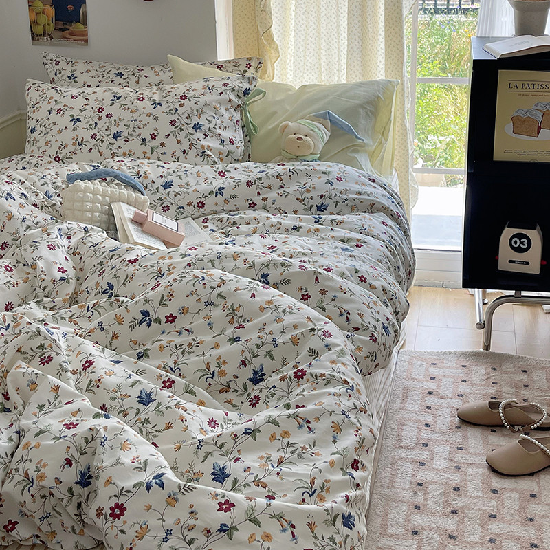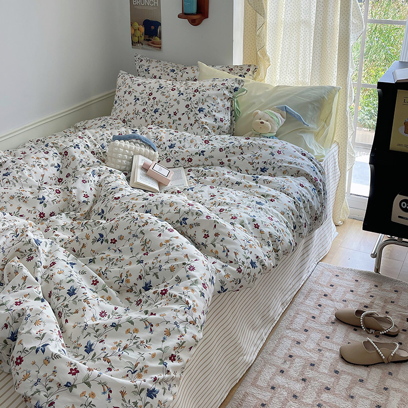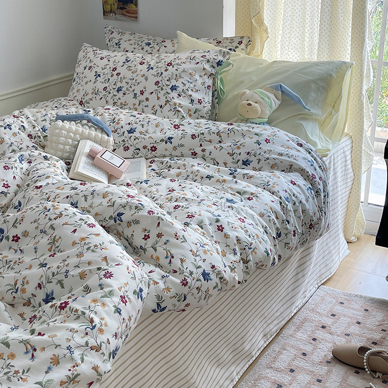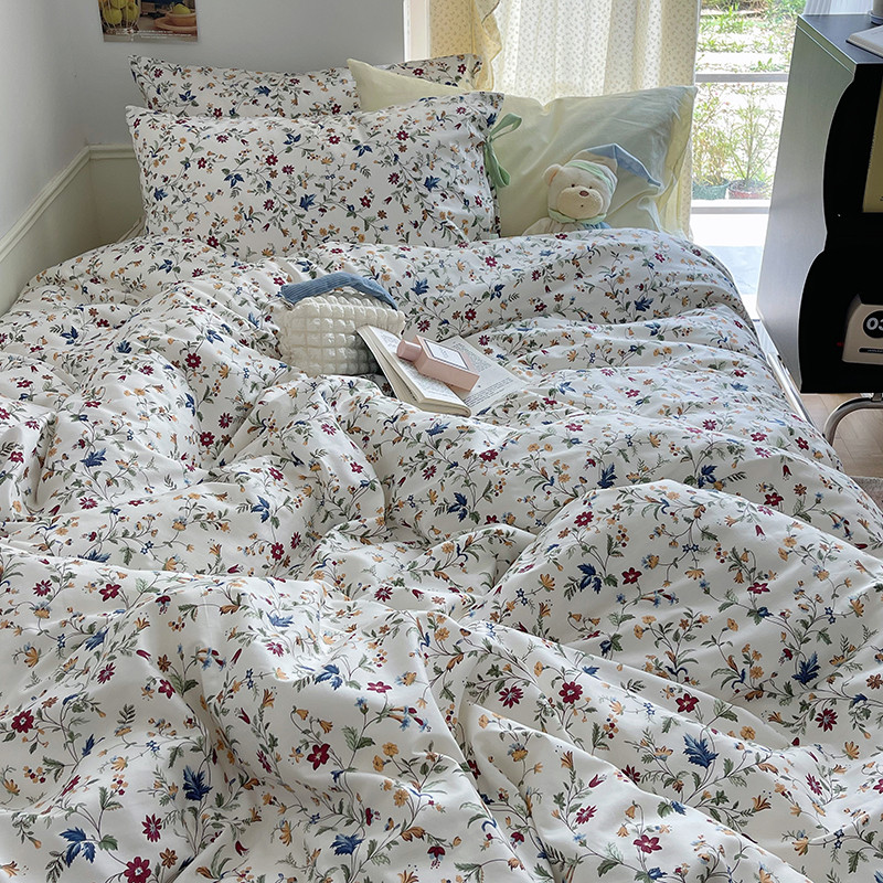 昔可 2023新款亲肤韩系全棉绑带款四件套 花漾