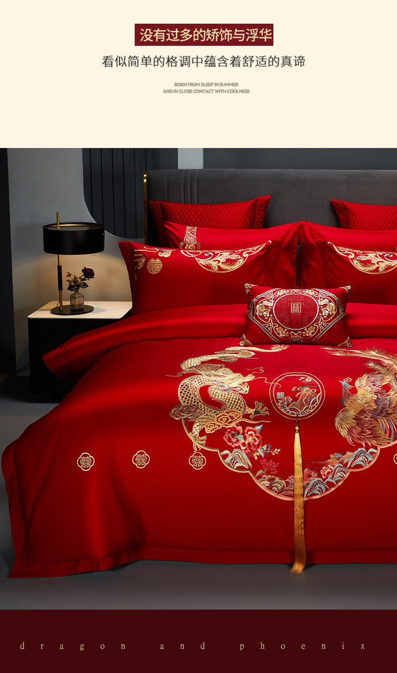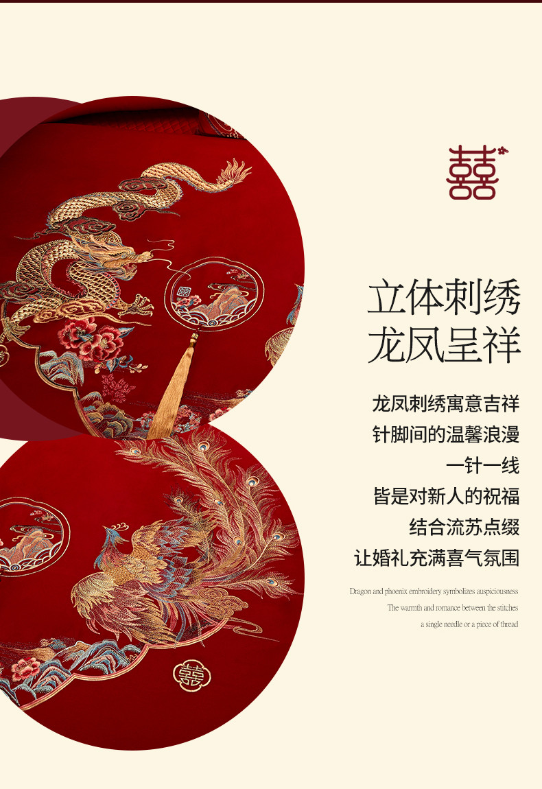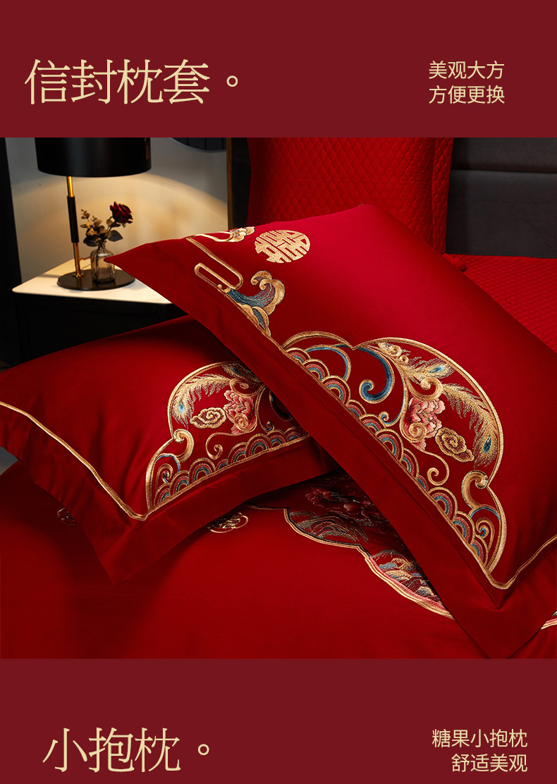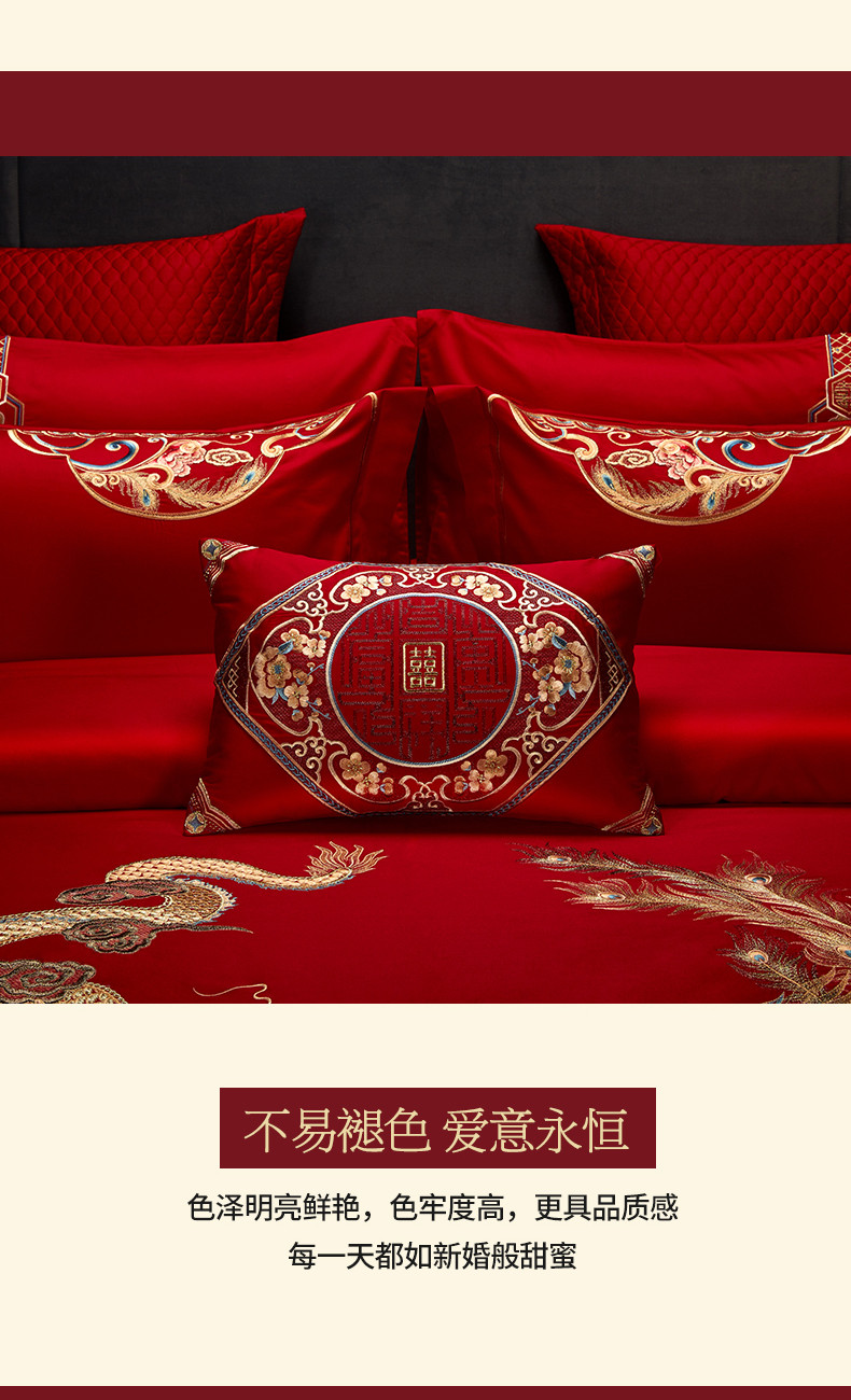 当前位置: 91家纺网 > 商品网购 > 床品套件 > 多件套 > 多件套 > 美娘阁 2023年秋冬新品长绒棉刺绣系列婚庆 四件套/多件套 龙飞凤舞