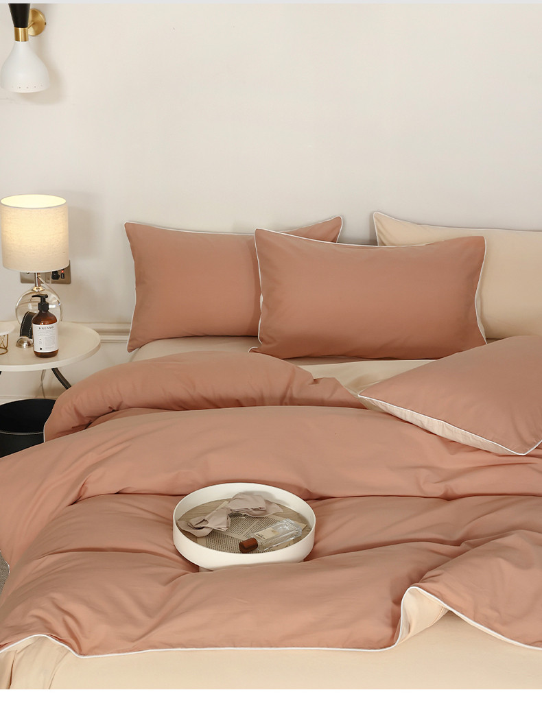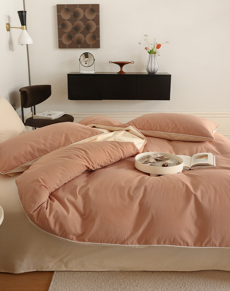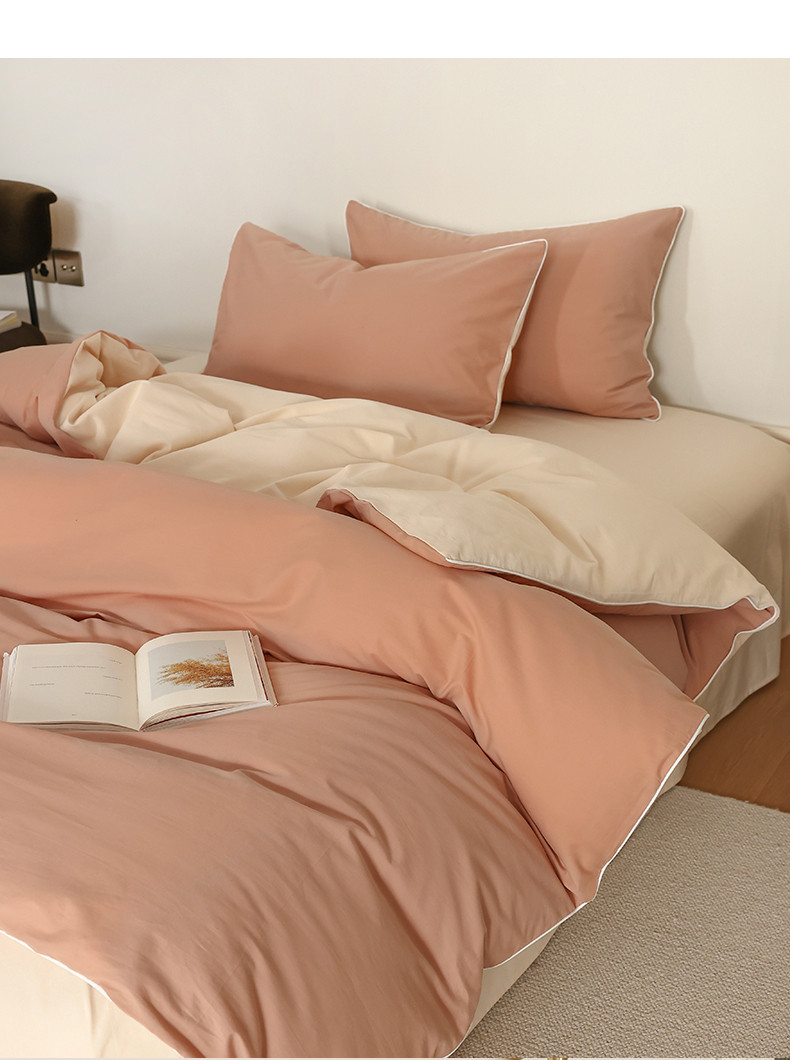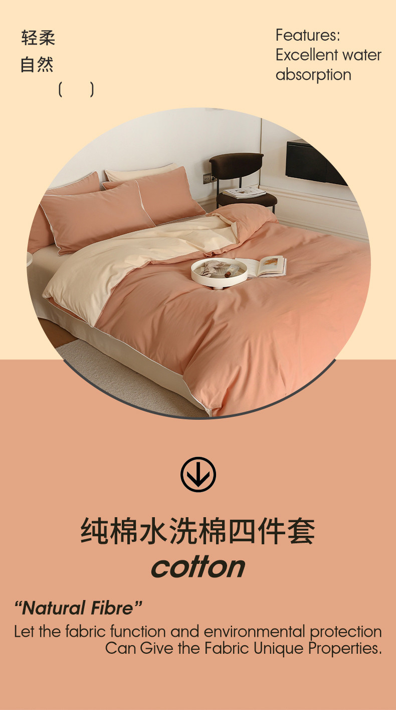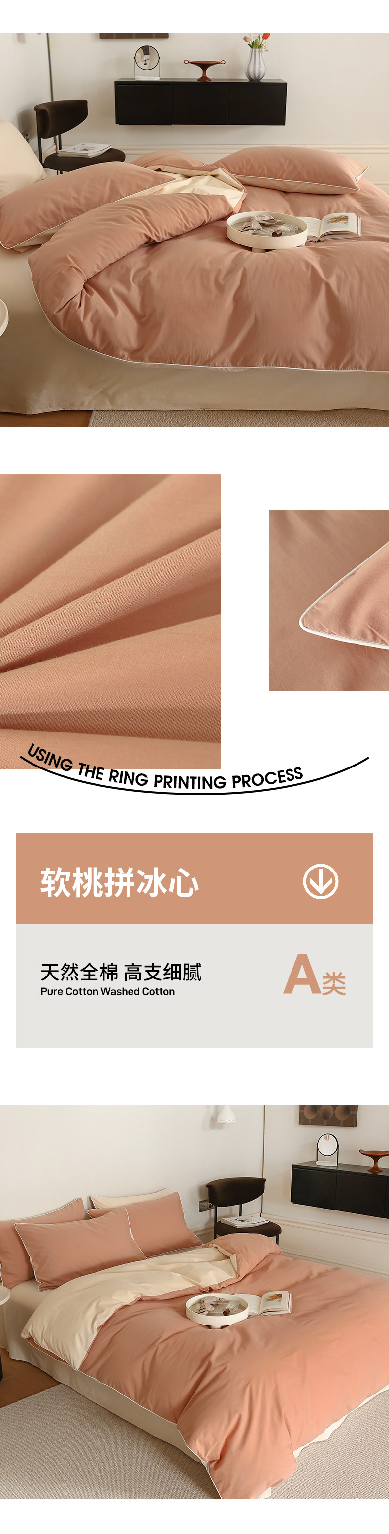 当前位置: 91家纺网 > 商品网购 > 床品套件 > 四件套 > 全棉普通四件套 > 万盛家纺 2025新款全棉水洗棉拼色四件套 软桃拼冰心