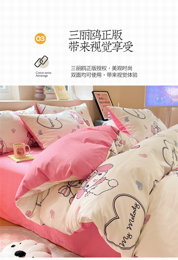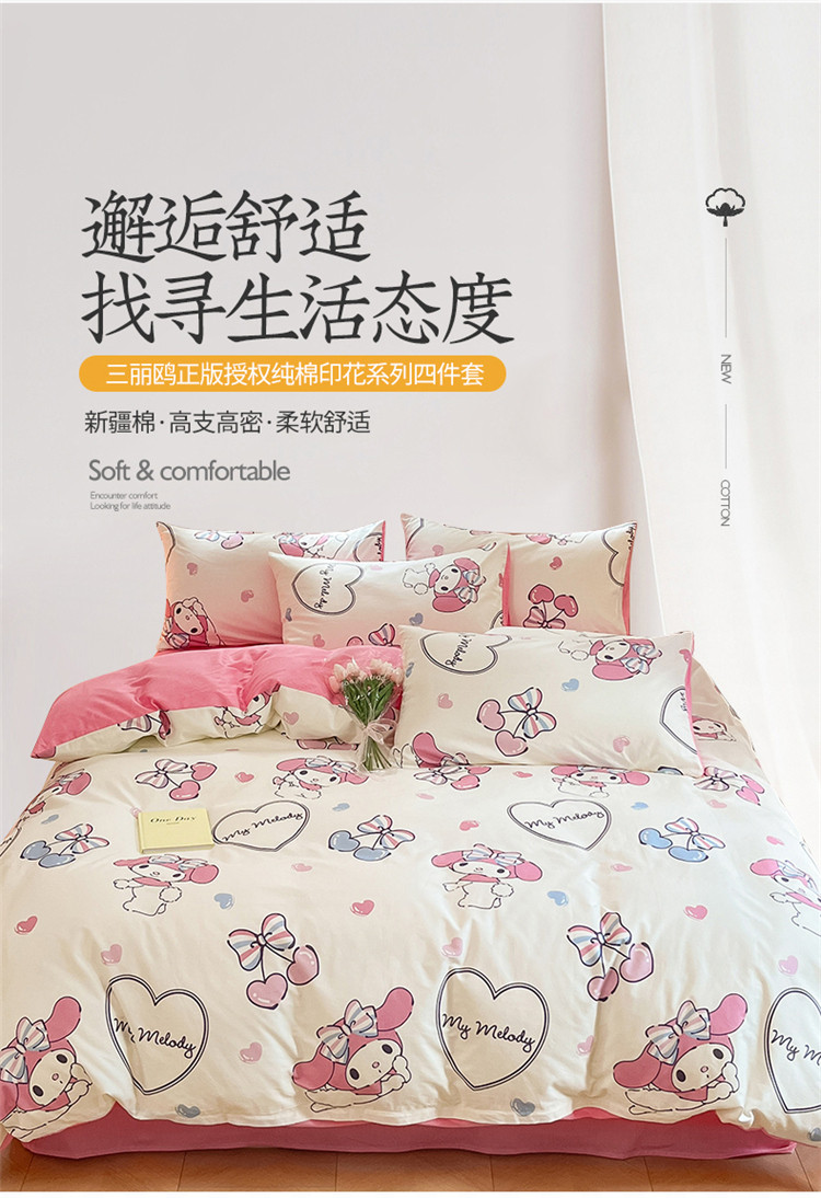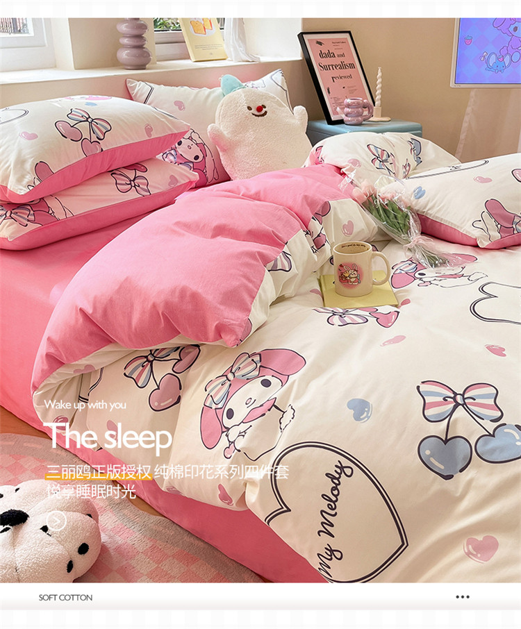 当前位置: 91家纺网 > 商品网购 > 床品套件 > 四件套 > 全棉普通四件套 > 桃子 2023新款三丽鸥正版授权纯棉印花系列四件套樱桃美乐蒂