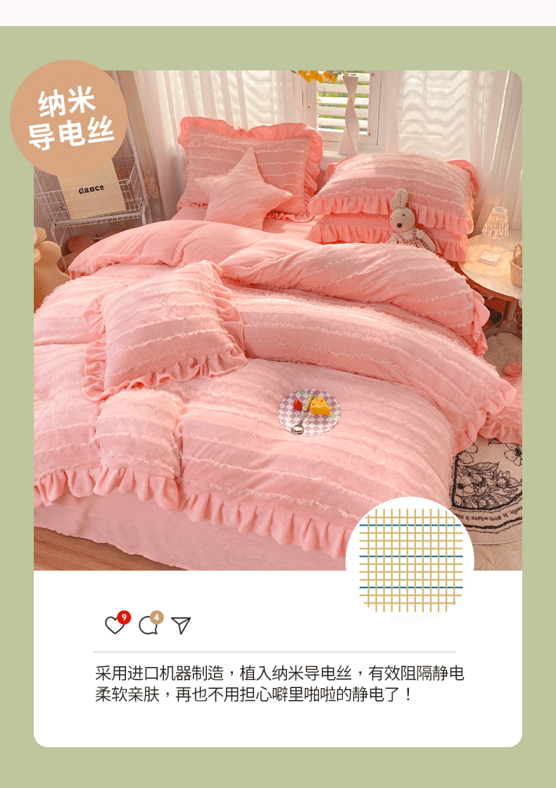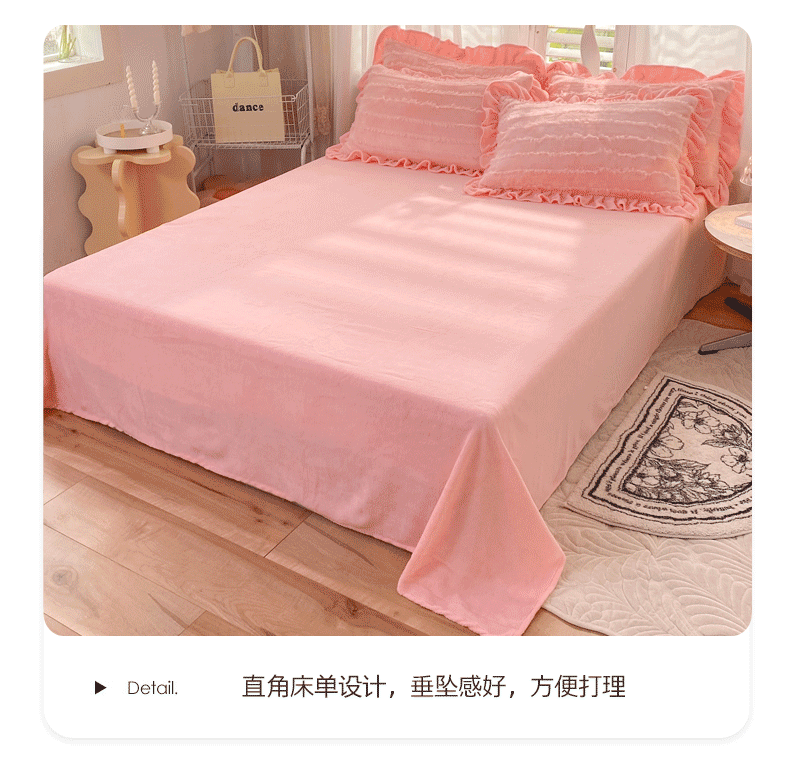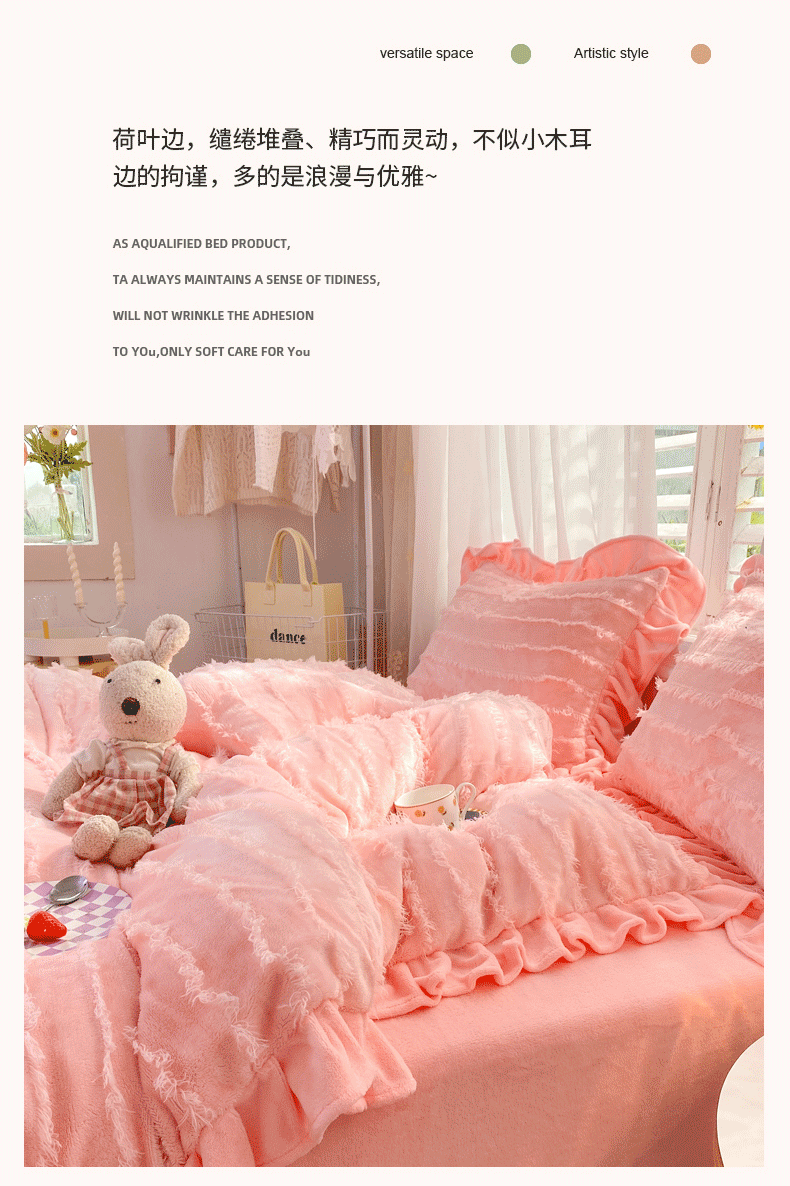 丝印良品 2024直播秋冬高克重500克床裙款泡泡四件套纯色印花泡泡-甜心粉,泡泡-甜心粉