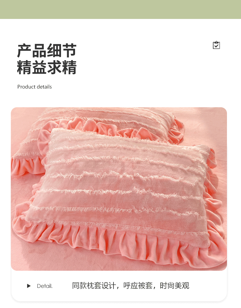 丝印良品 2023新款高端牛奶绒提花四件套 蜜桃粉