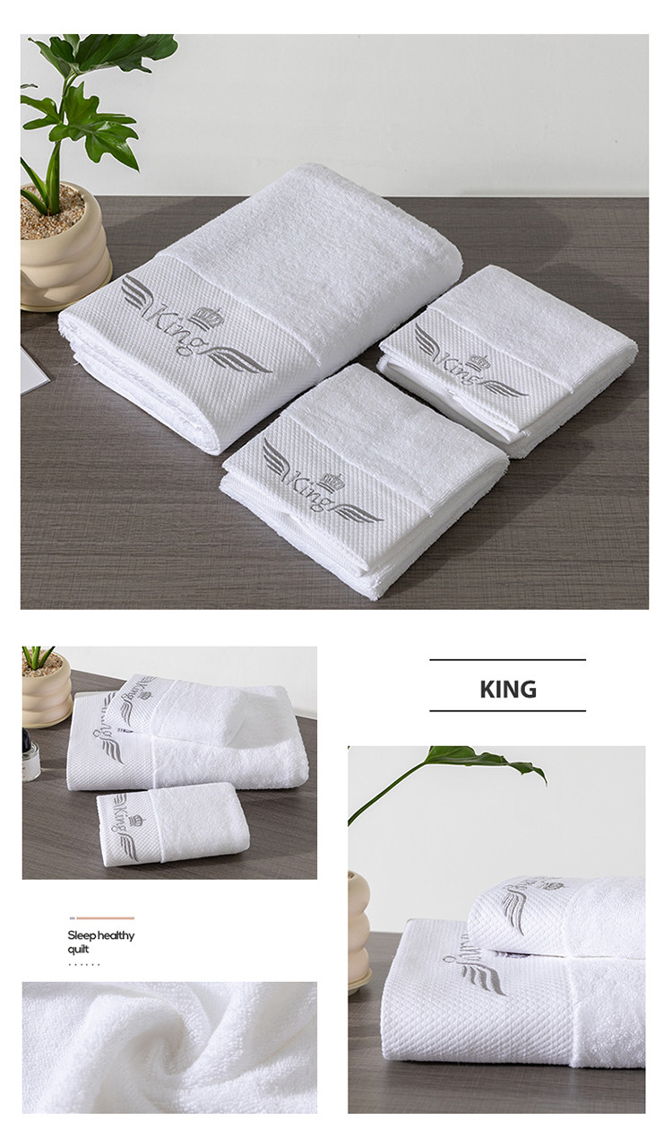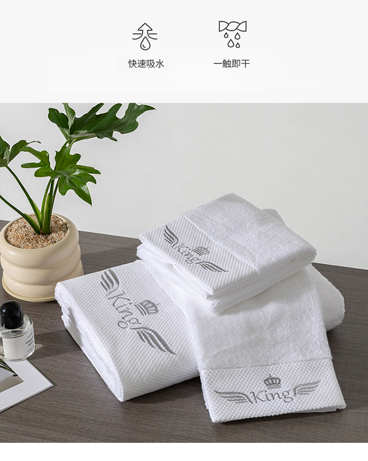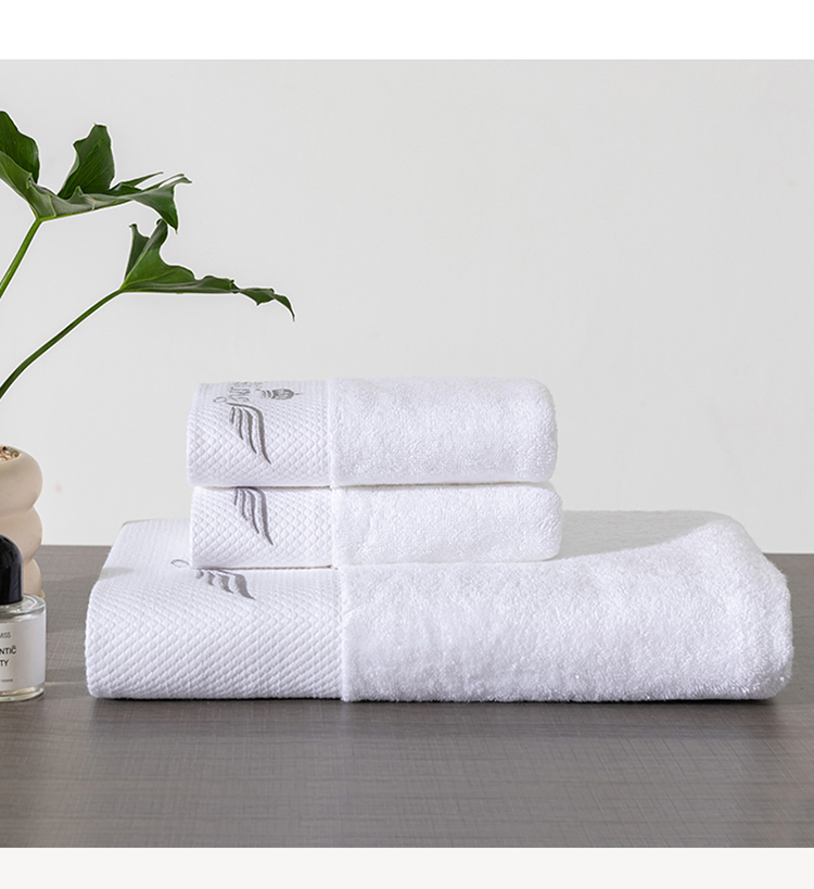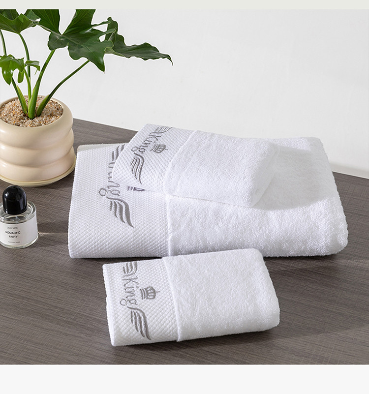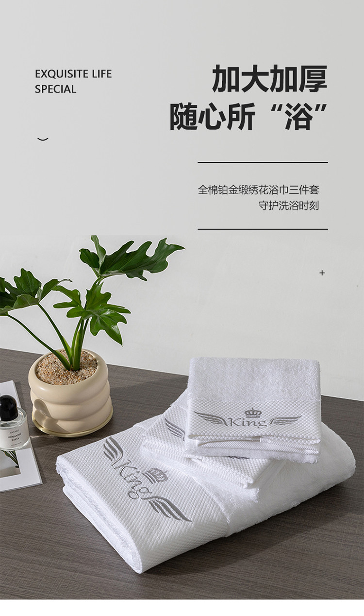全棉纯棉五星级酒店浴巾布草宾馆毛巾民宿铂金缎绣花面巾三件套king