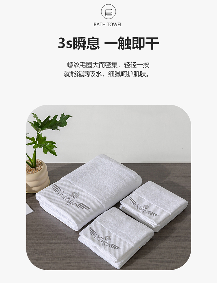 商品名称:全棉纯棉五星级酒店浴巾布草宾馆毛巾民宿铂金缎绣花面巾三件套king