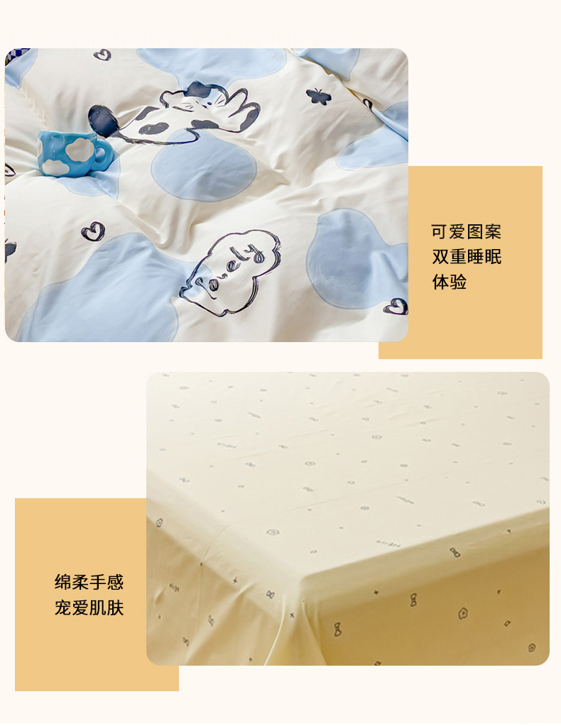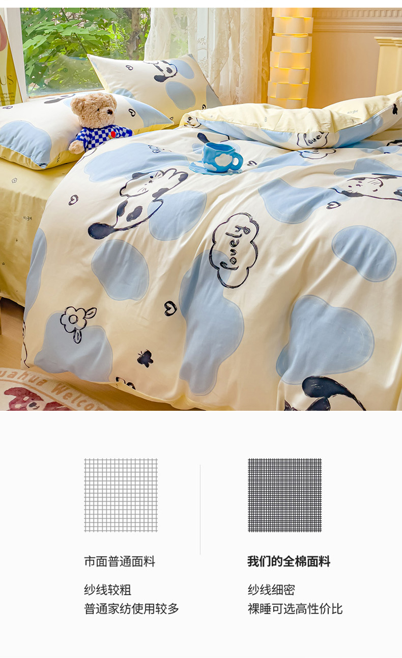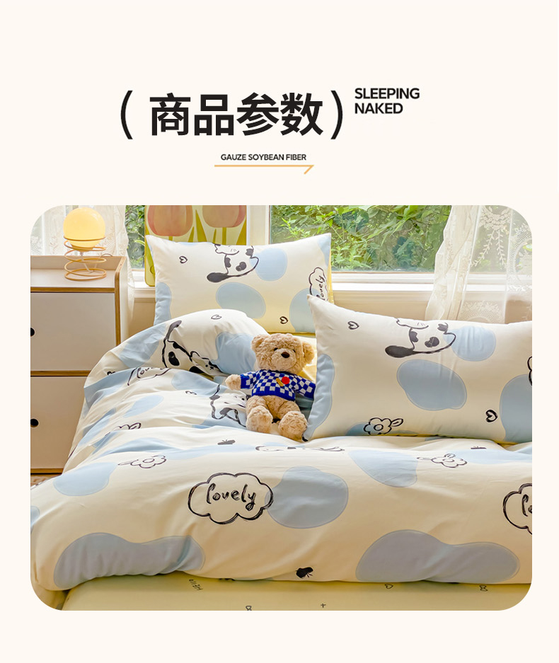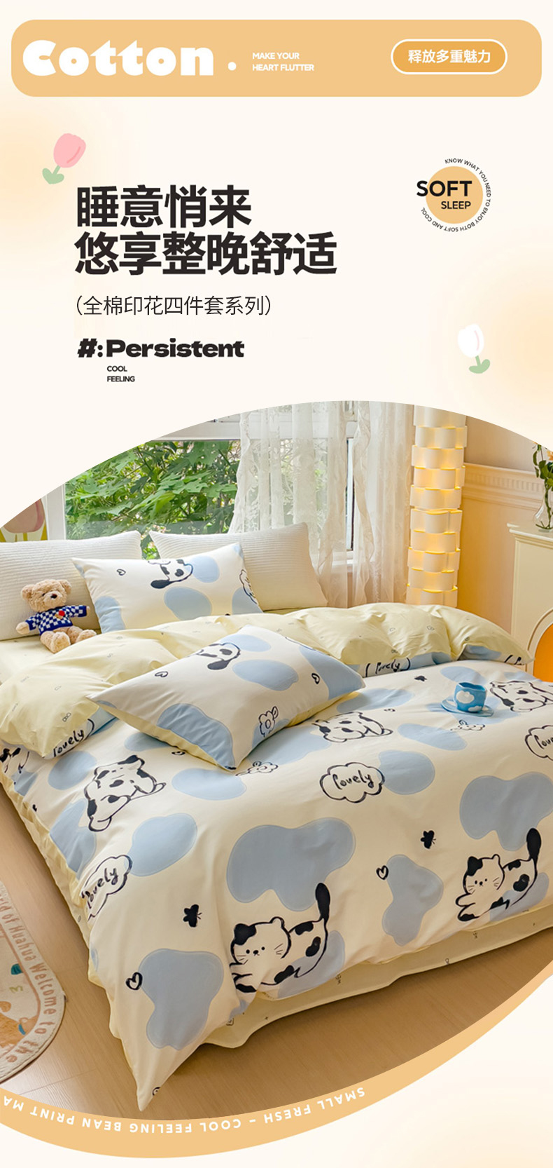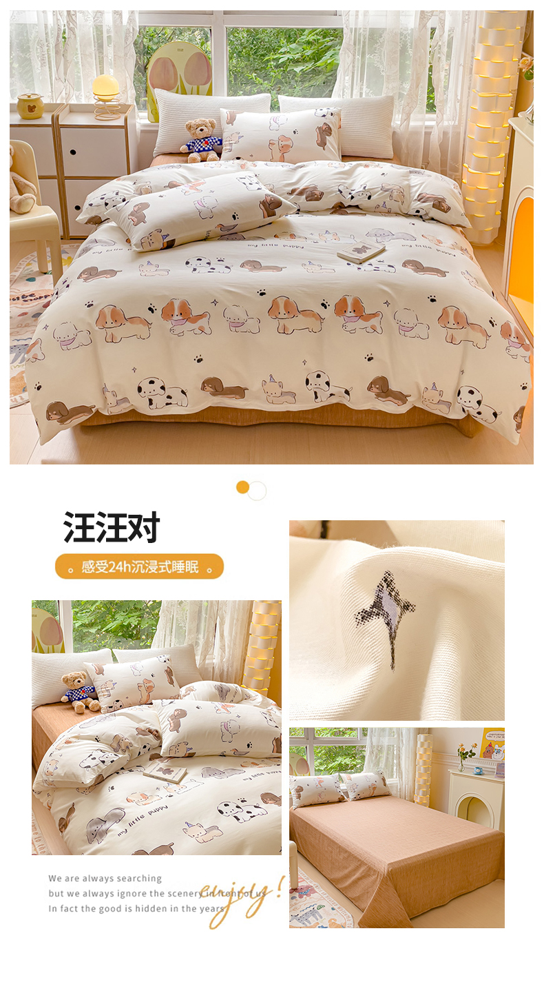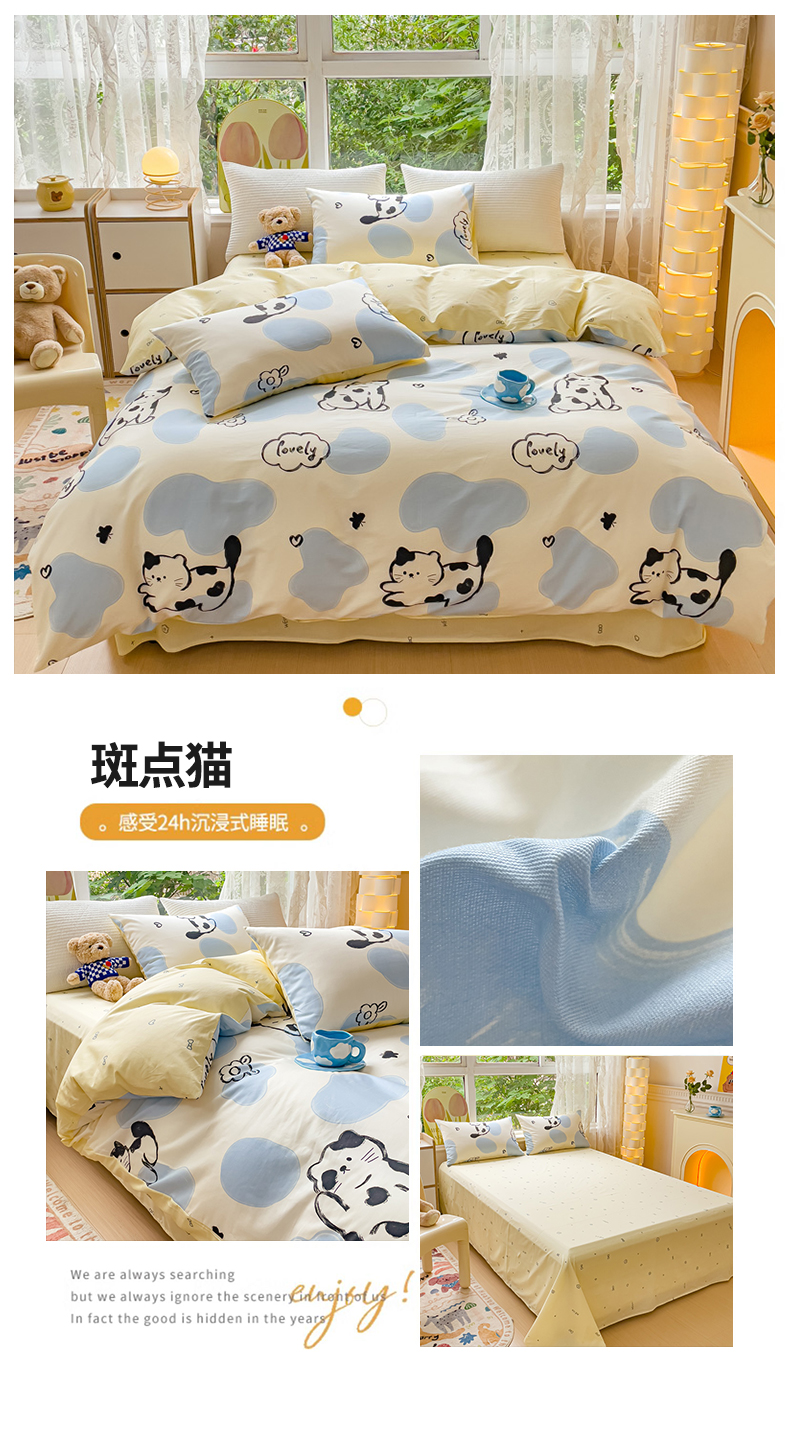 (总)珺柔家纺 2025新款全棉双层纱印花四件套,粉豹纹,焦糖小曲奇,礼物女孩,猫狗日记,奶油星空,线条苹果猫,小飞象,小狗的家,樱桃,樱桃西高地
