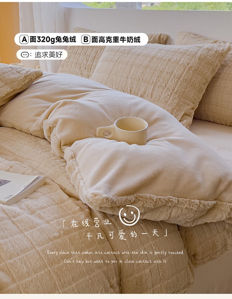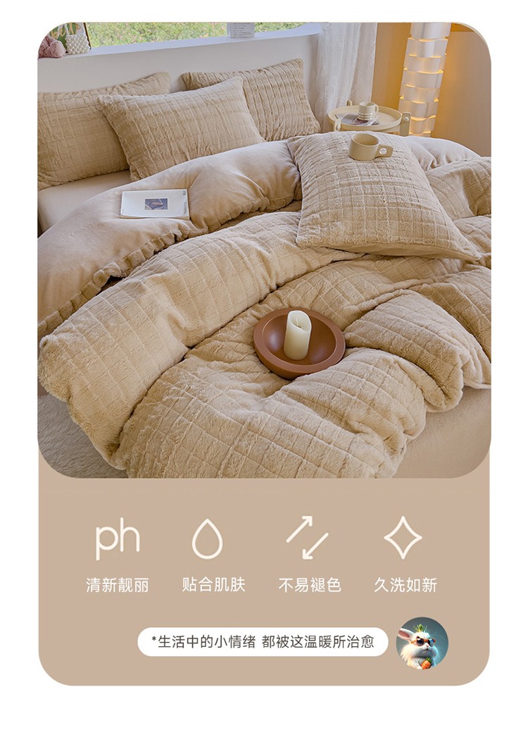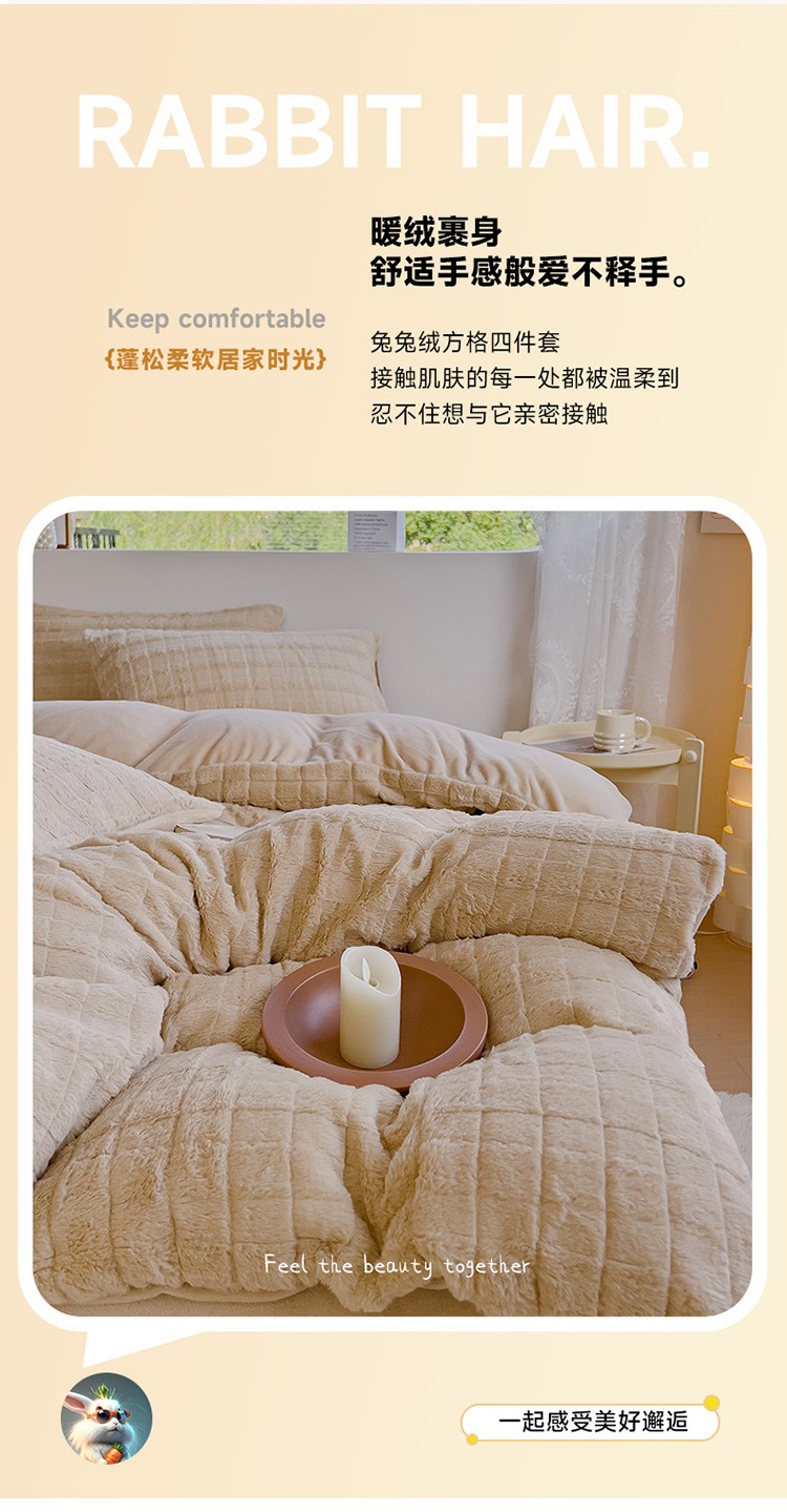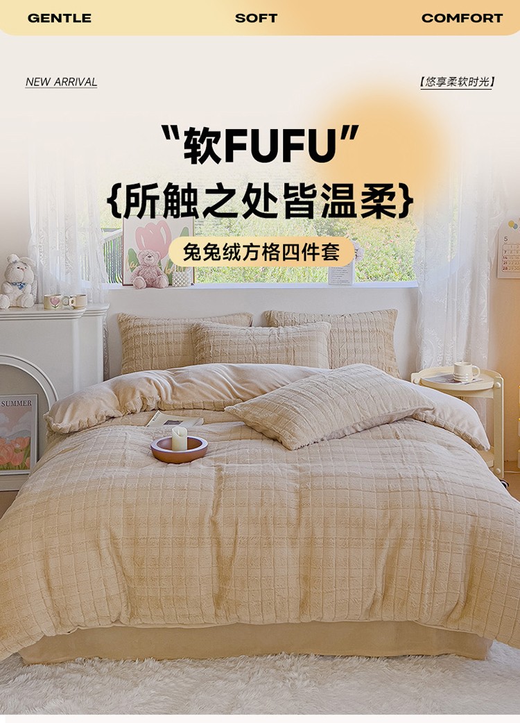 商品名称:大米家居 2023高克重兔兔绒方格系列四件套 方格-拿铁