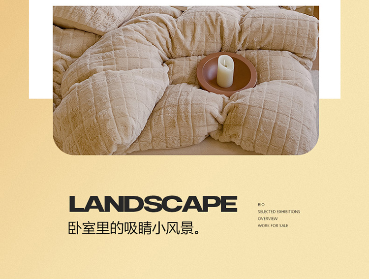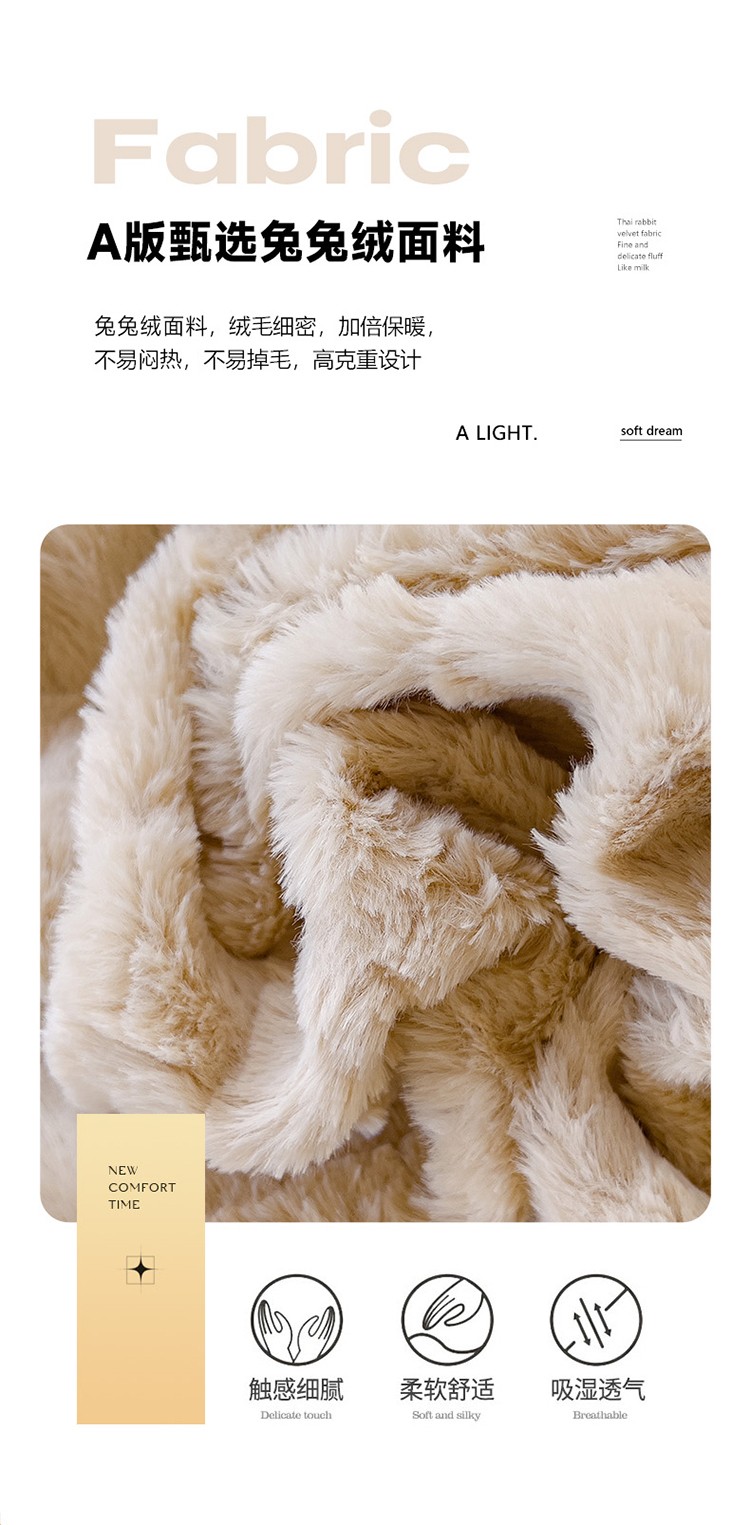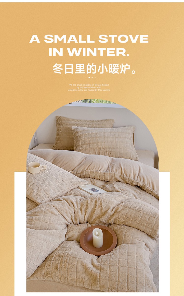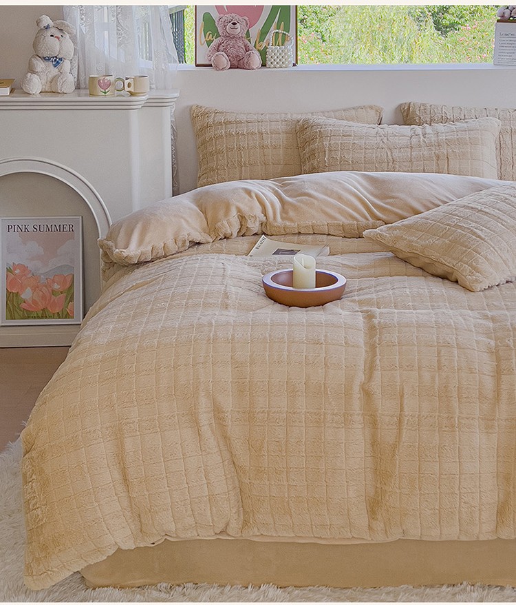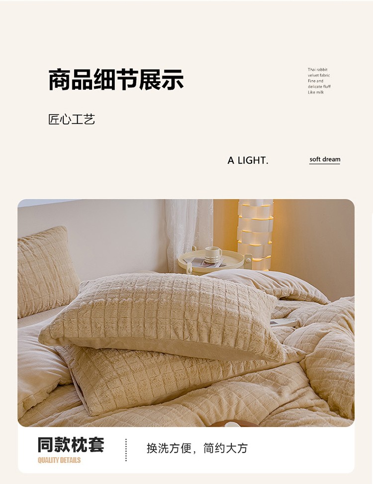 商品名称:大米家居 2023高克重兔兔绒方格系列四件套 方格-拿铁