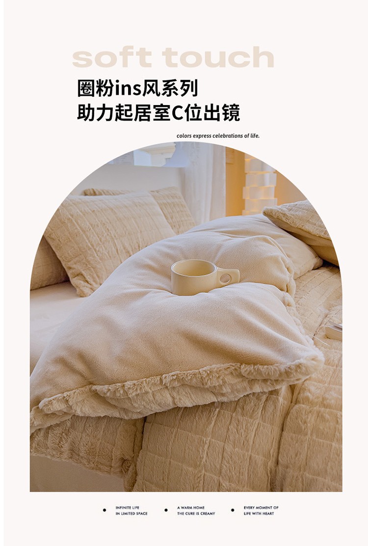 大米家居 2023高克重兔兔绒方格系列四件套 方格-拿铁