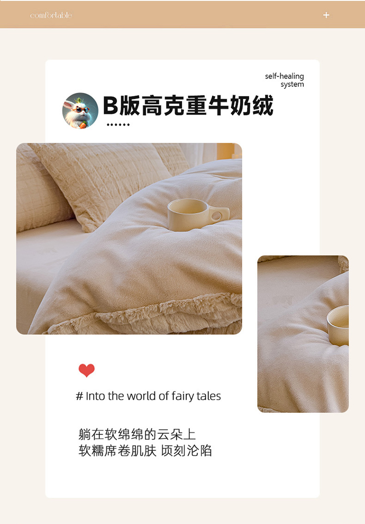 (总)大米家居 2025新款牛奶绒织带轻奢工艺款四件套-卡夫系列,卡夫-暖白,卡夫-柔粉,卡夫-湛蓝
