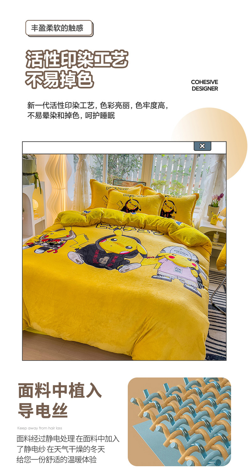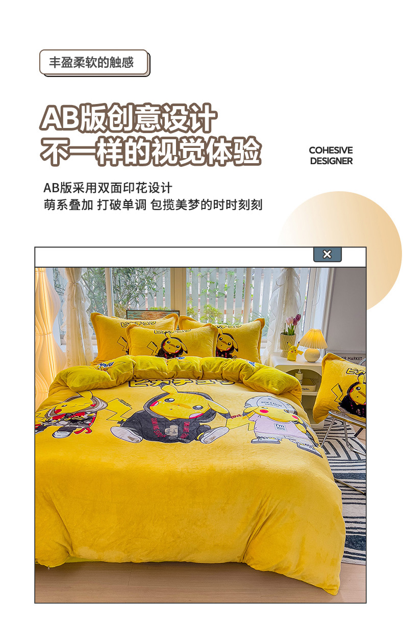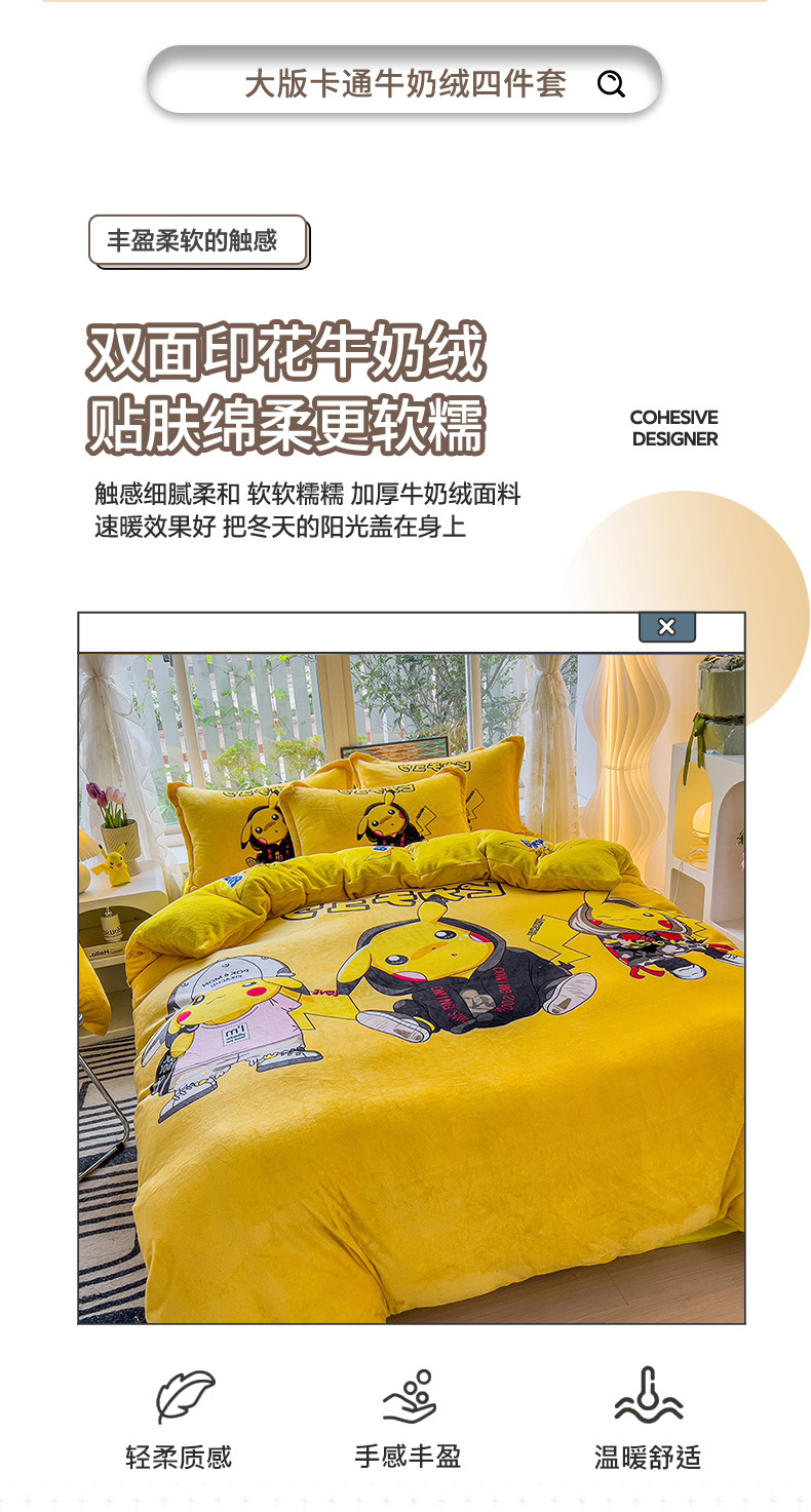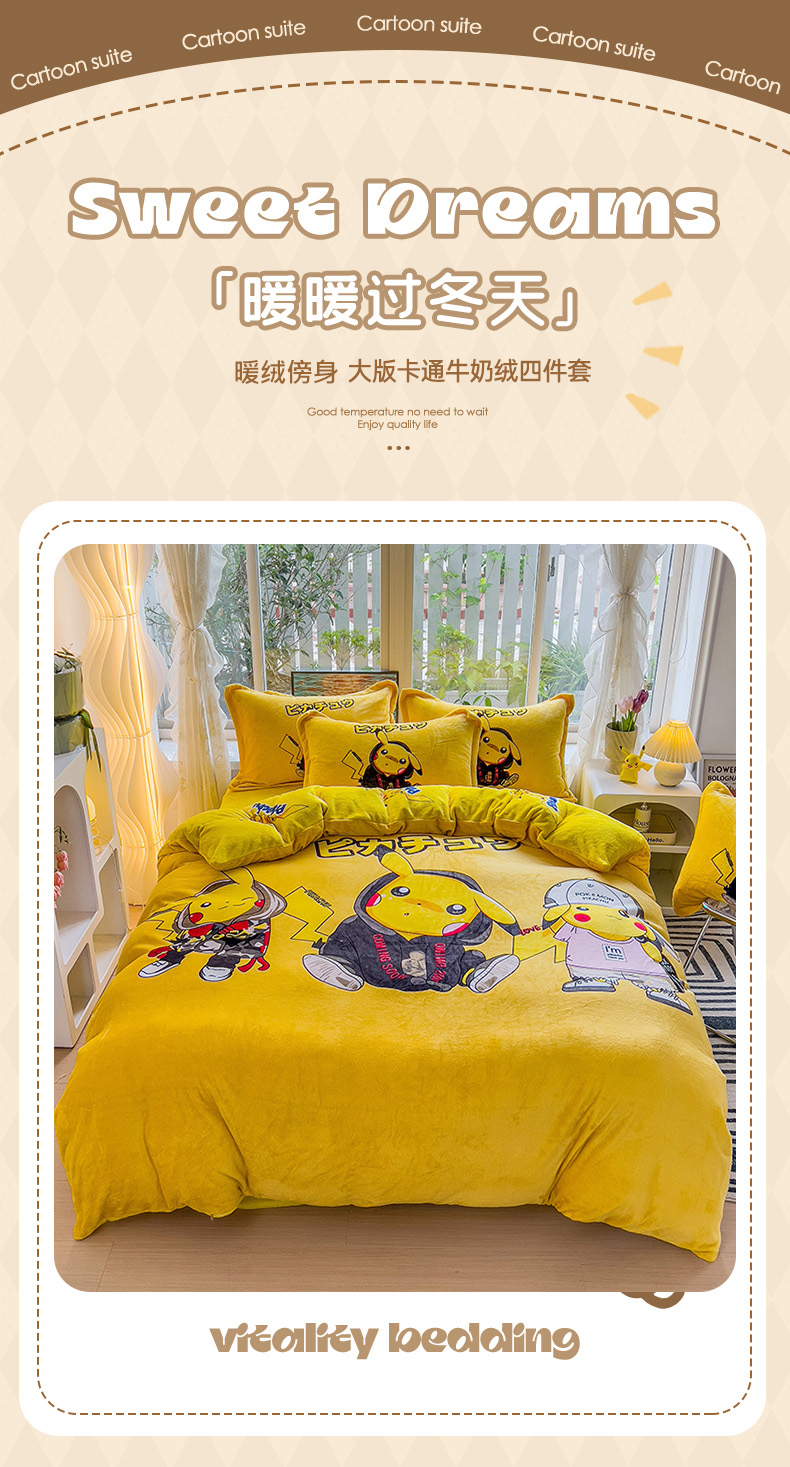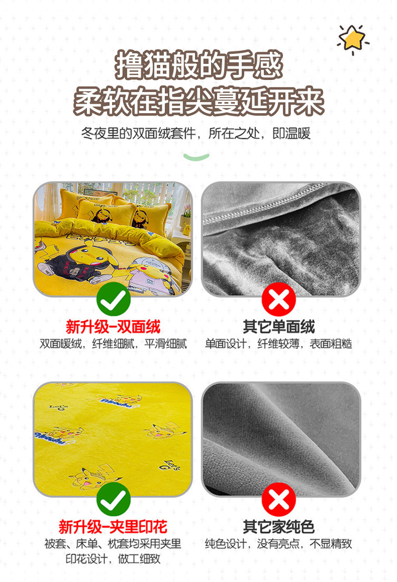 当前位置: 91家纺网 > 商品网购 > 床品套件 > 四件套 > 法莱绒四件套 > 2024新款卡通法莱绒牛奶绒珊瑚绒四件套升级版酷酷皮卡丘
