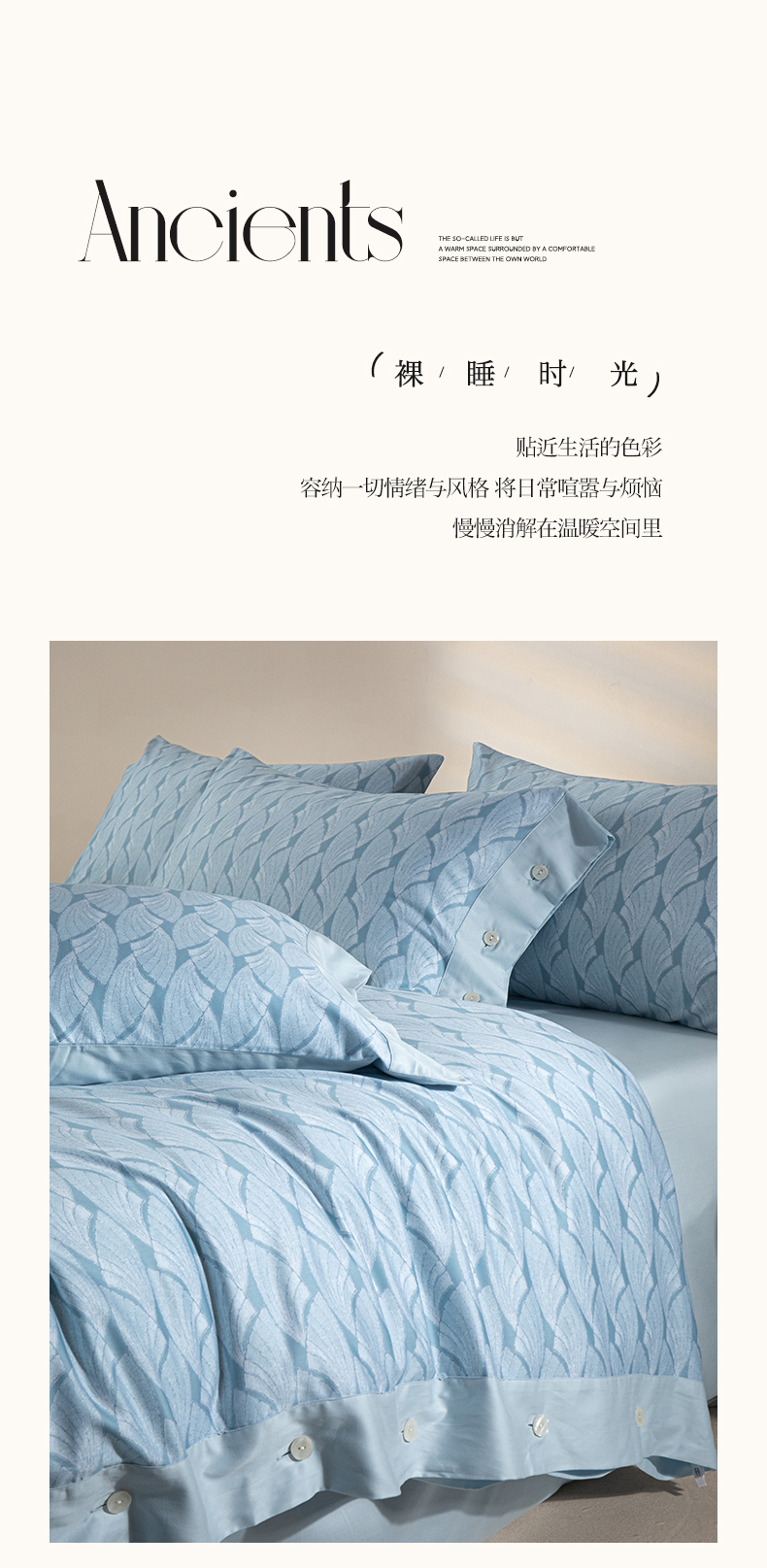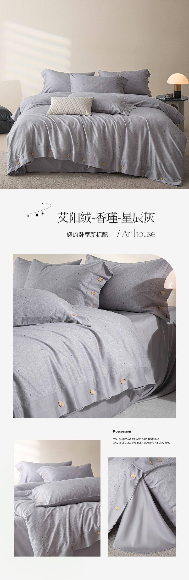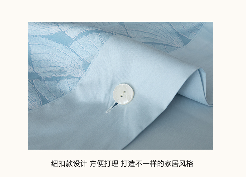 商品名称:栩裕纺织 2023新款磨毛艾阳绒纽扣款四件套 晴山蓝