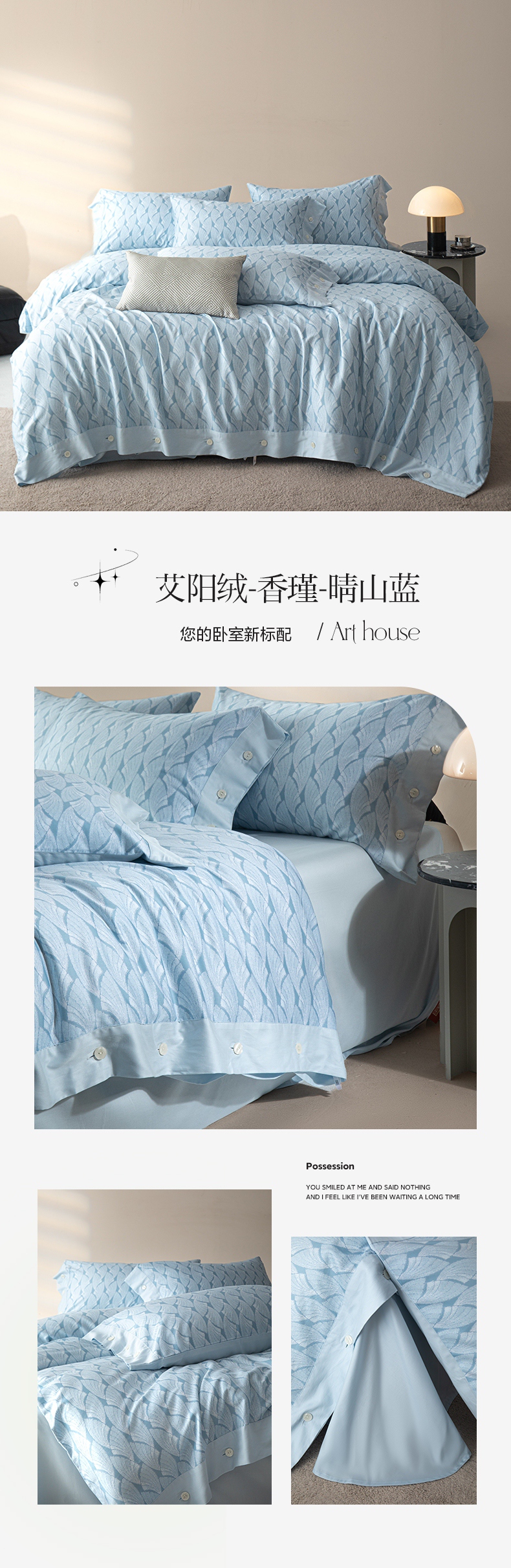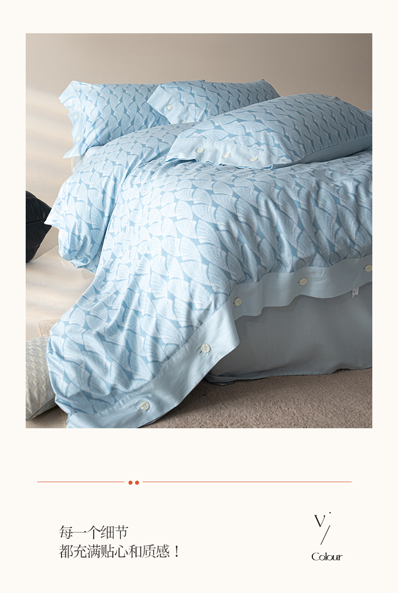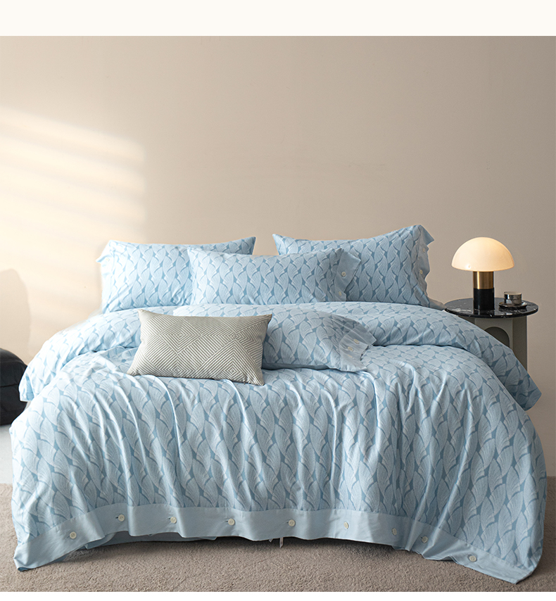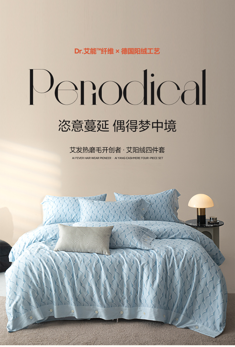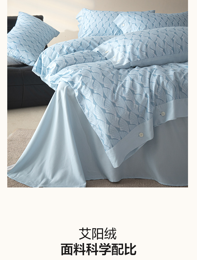 栩裕纺织 2023新款磨毛艾阳绒纽扣款四件套 晴山蓝