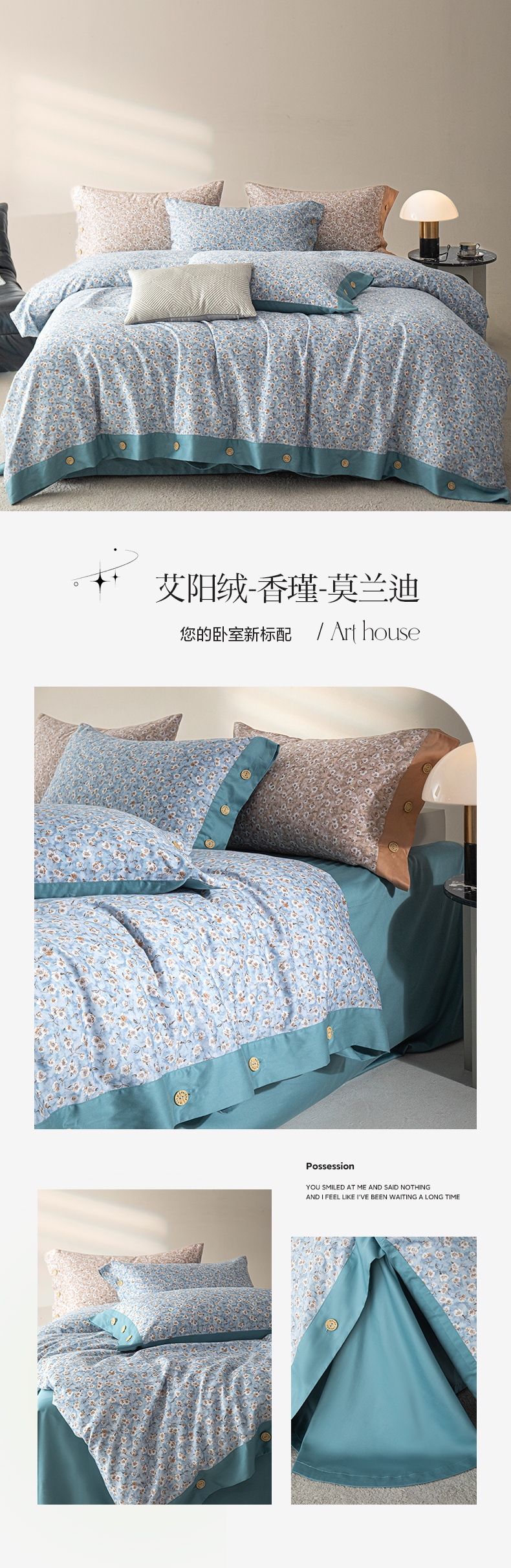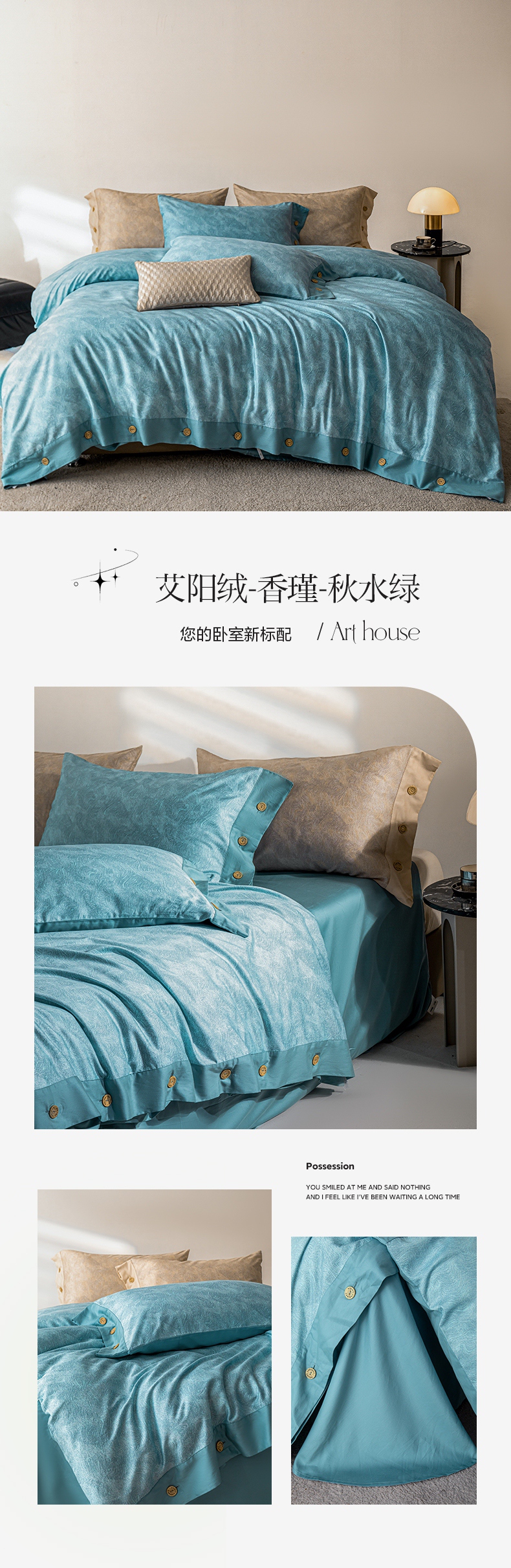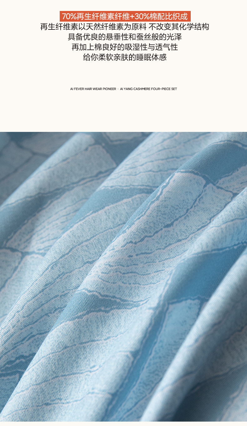 栩裕纺织 2023新款磨毛艾阳绒纽扣款四件套 晴山蓝