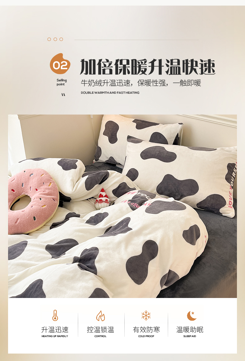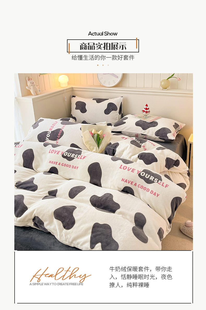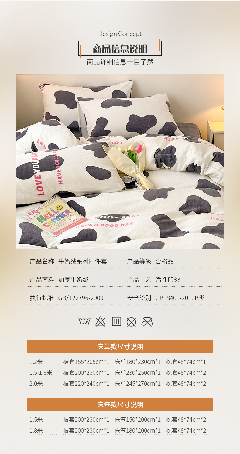商品名称:桃子家居 2023新款ins韩系简约卡通奶油小清新加厚牛奶绒系列四件套 绒-尔曼