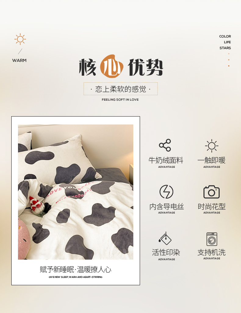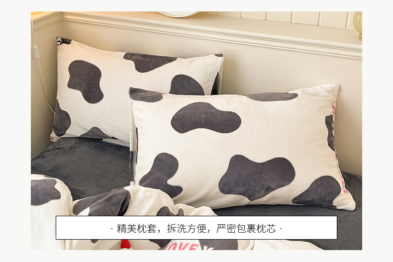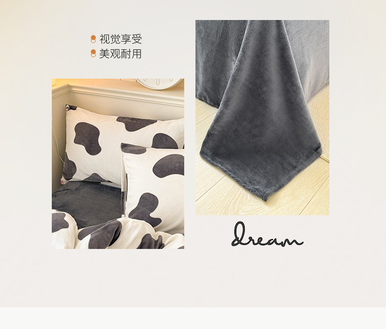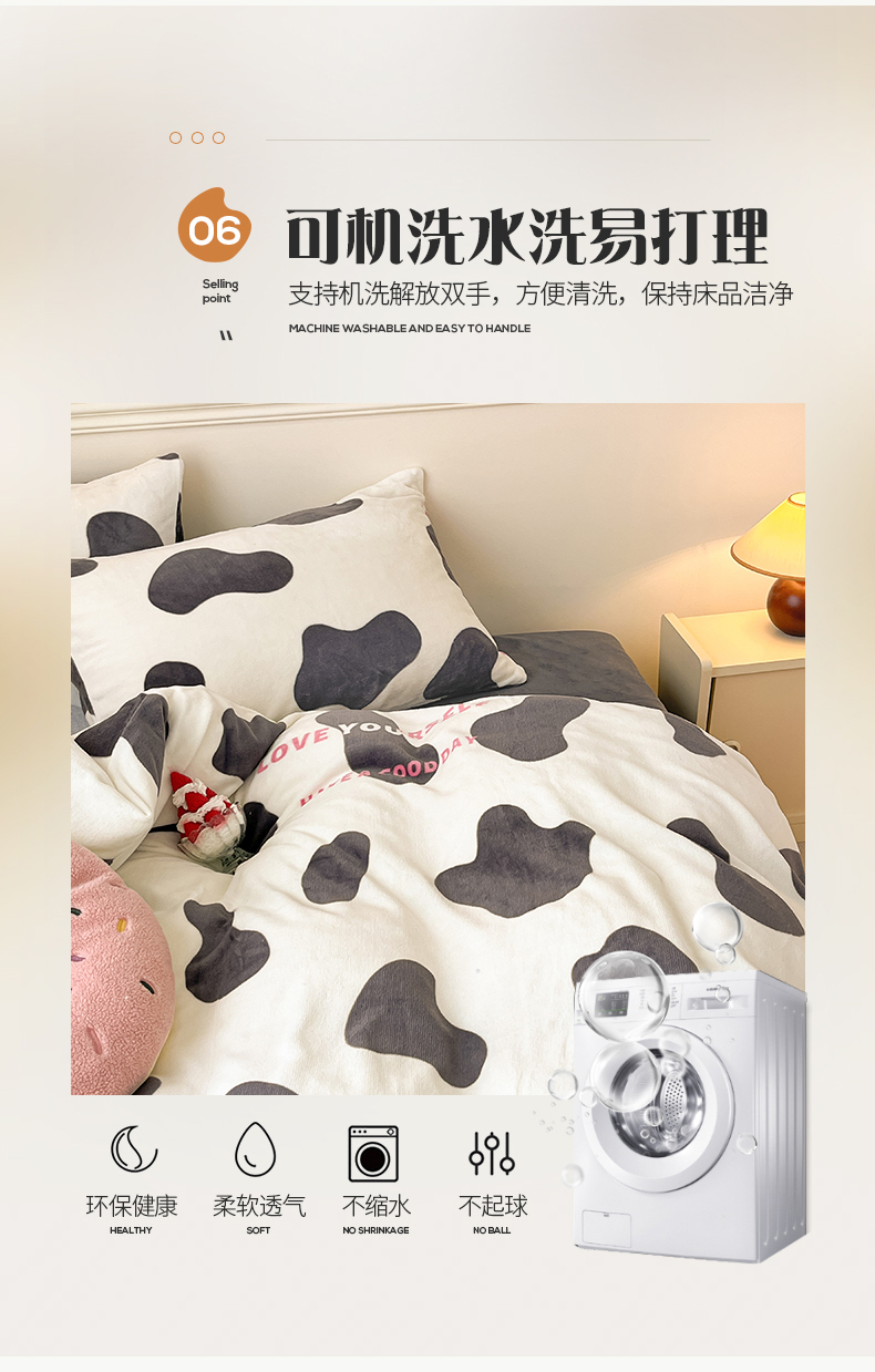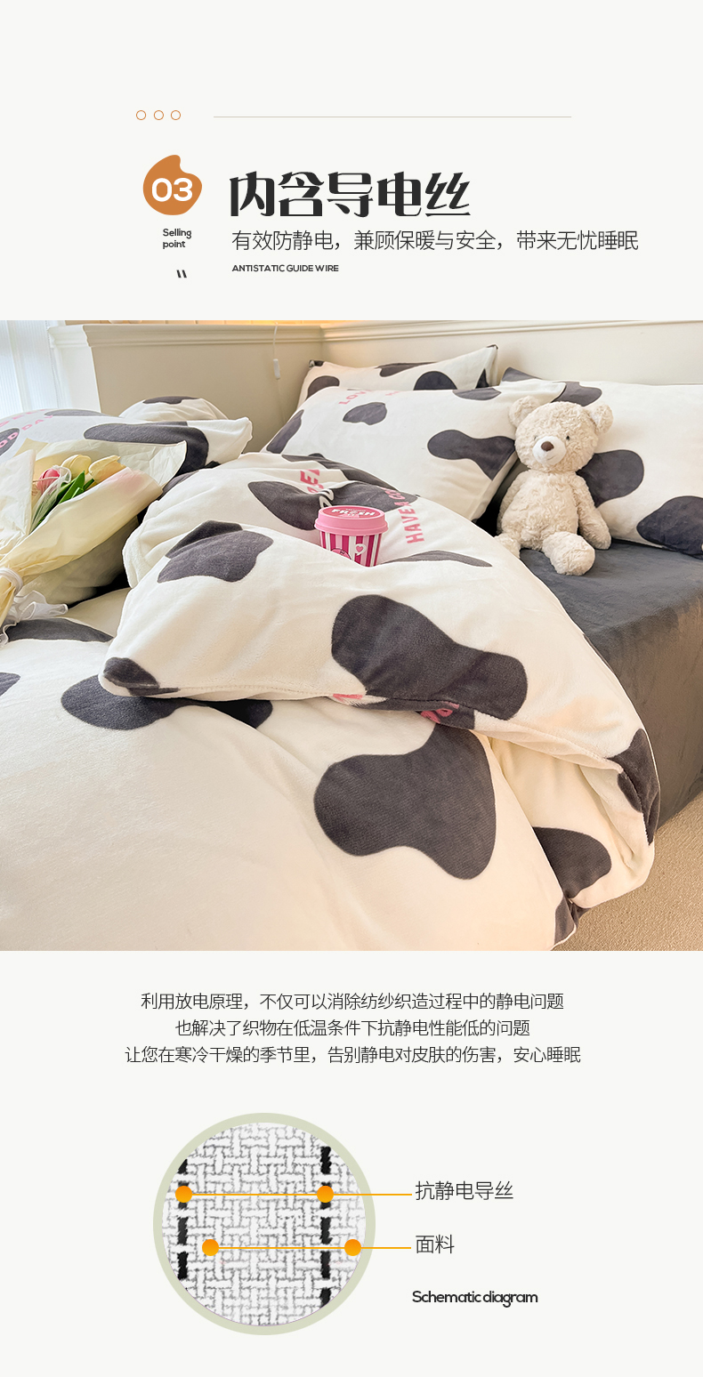 商品名称:桃子家居 2023新款ins韩系简约卡通奶油小清新加厚牛奶绒系列四件套 绒-尔曼