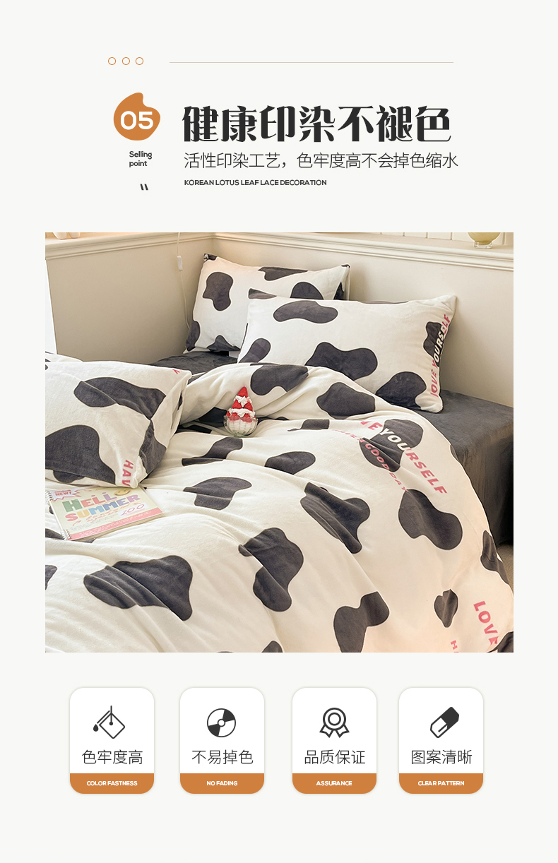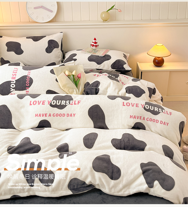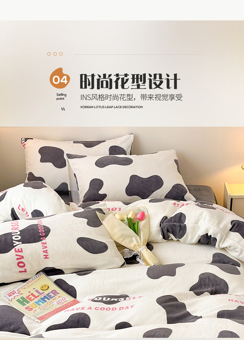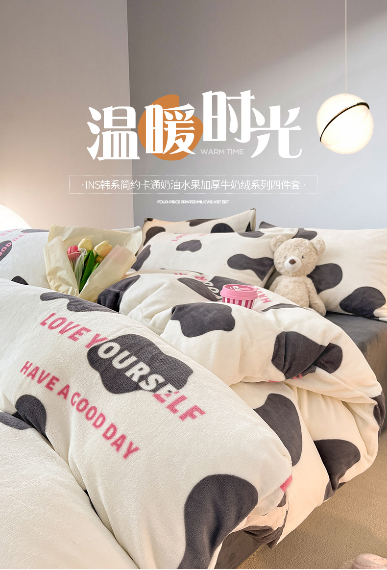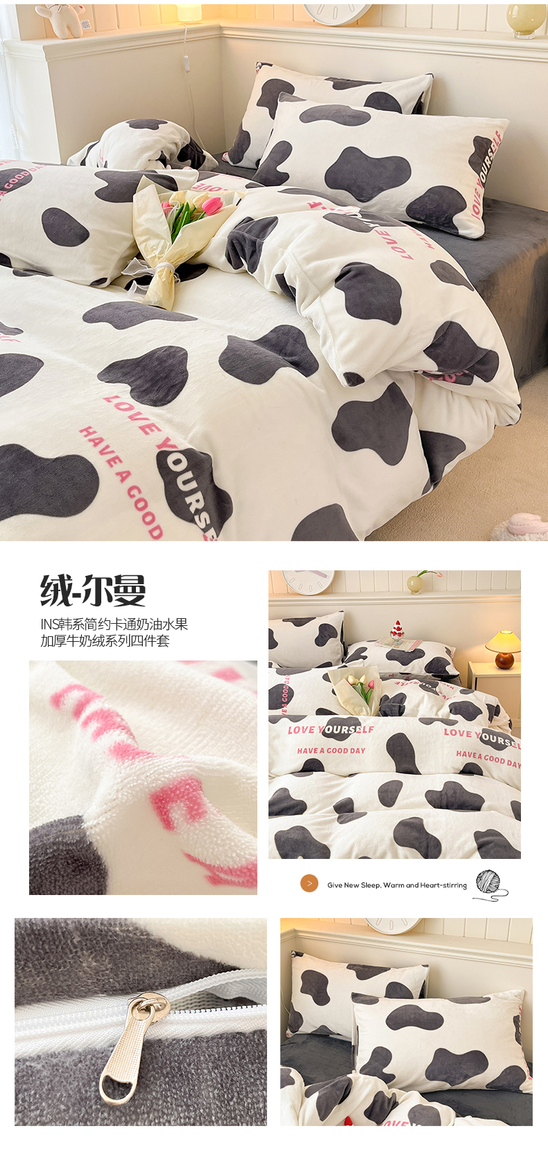 桃子家居 2023新款ins韩系简约卡通奶油小清新加厚牛奶绒系列四件套 绒-尔曼