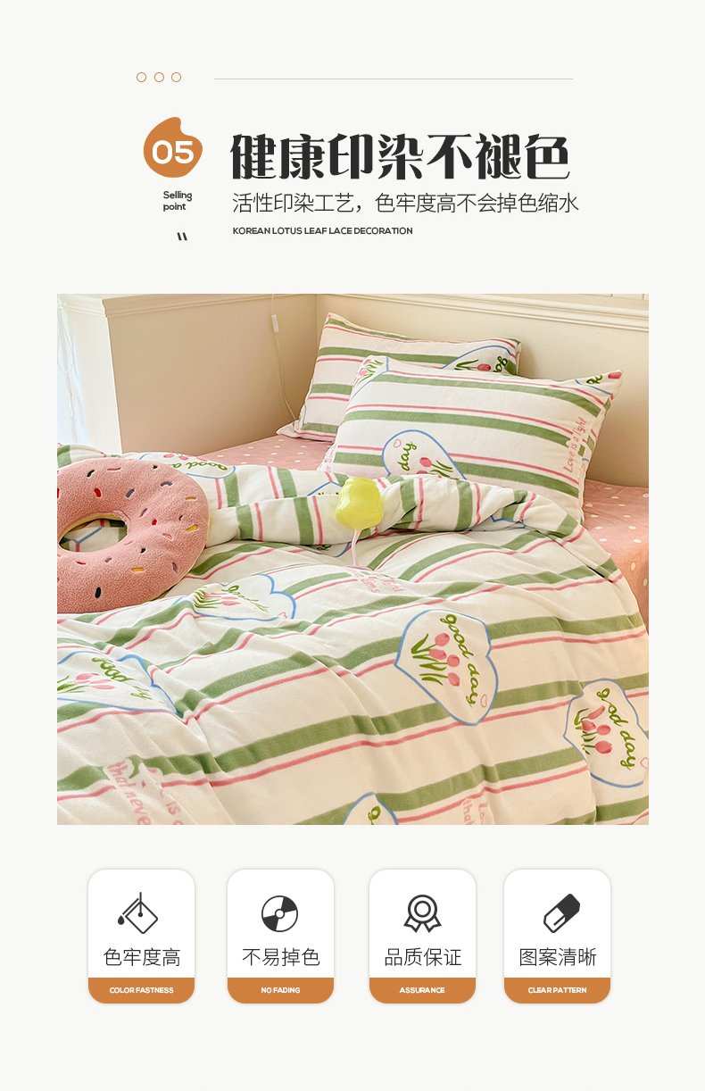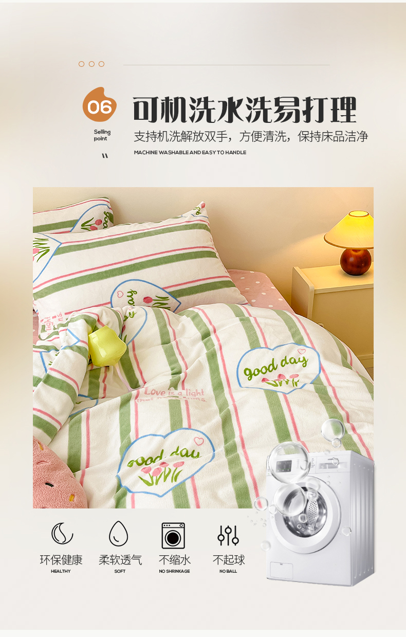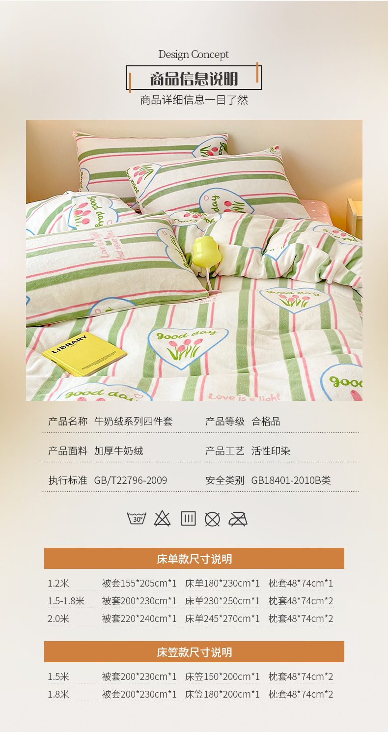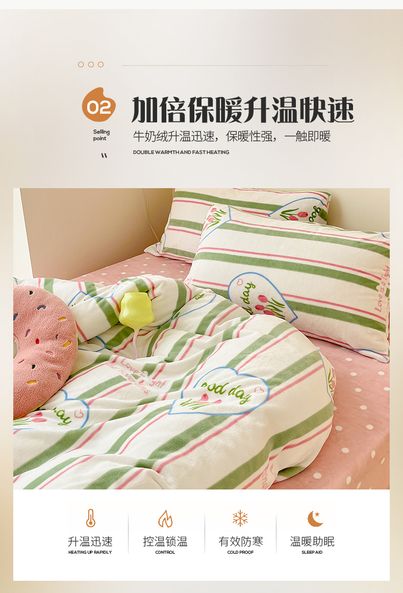 商品名称:桃子家居 2023新款ins韩系简约卡通奶油小清新加厚牛奶绒系列四件套 绒-莱茵