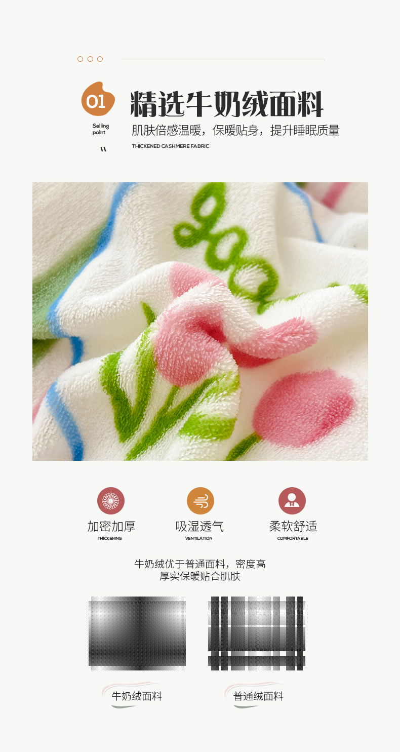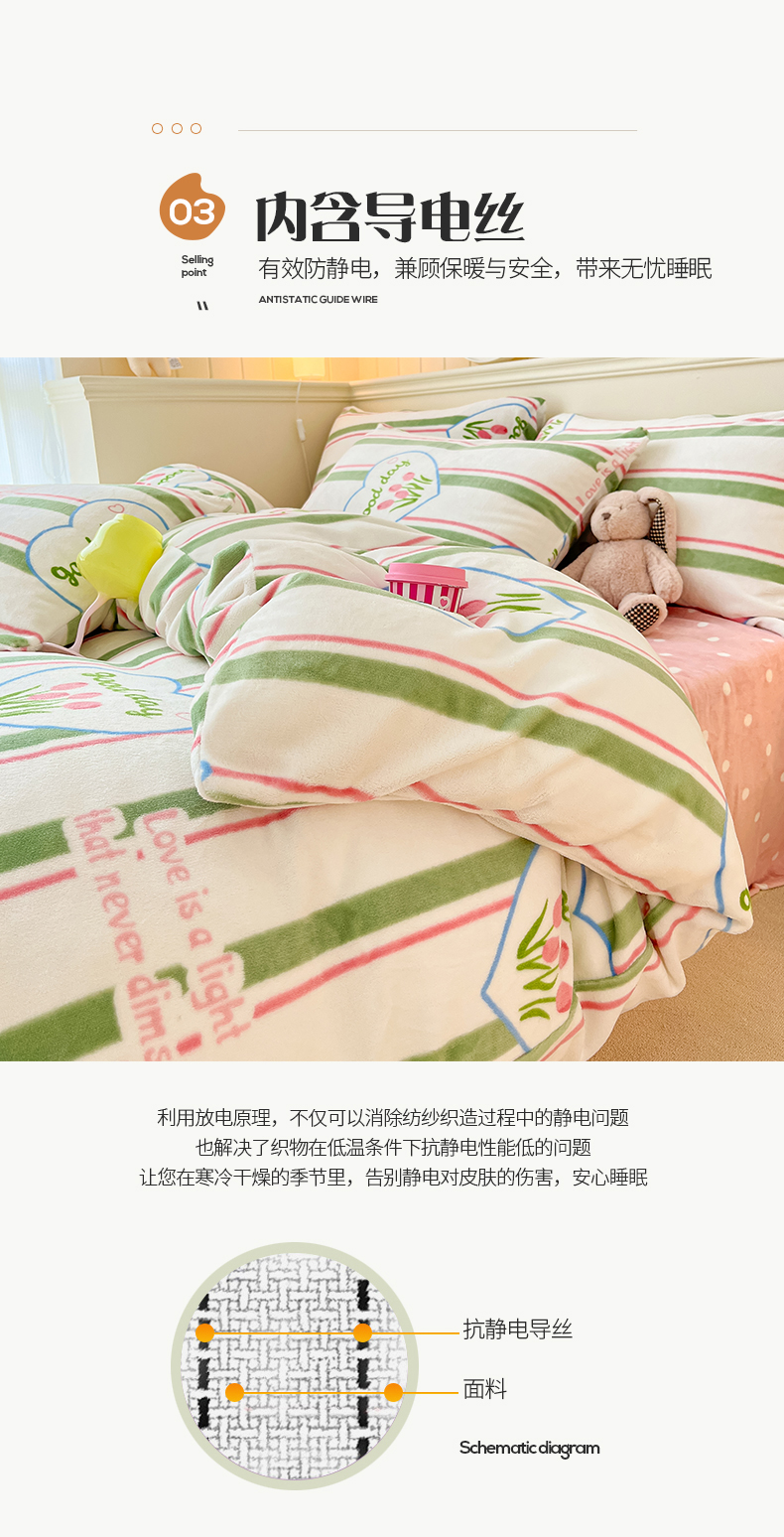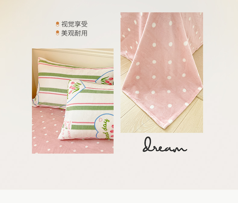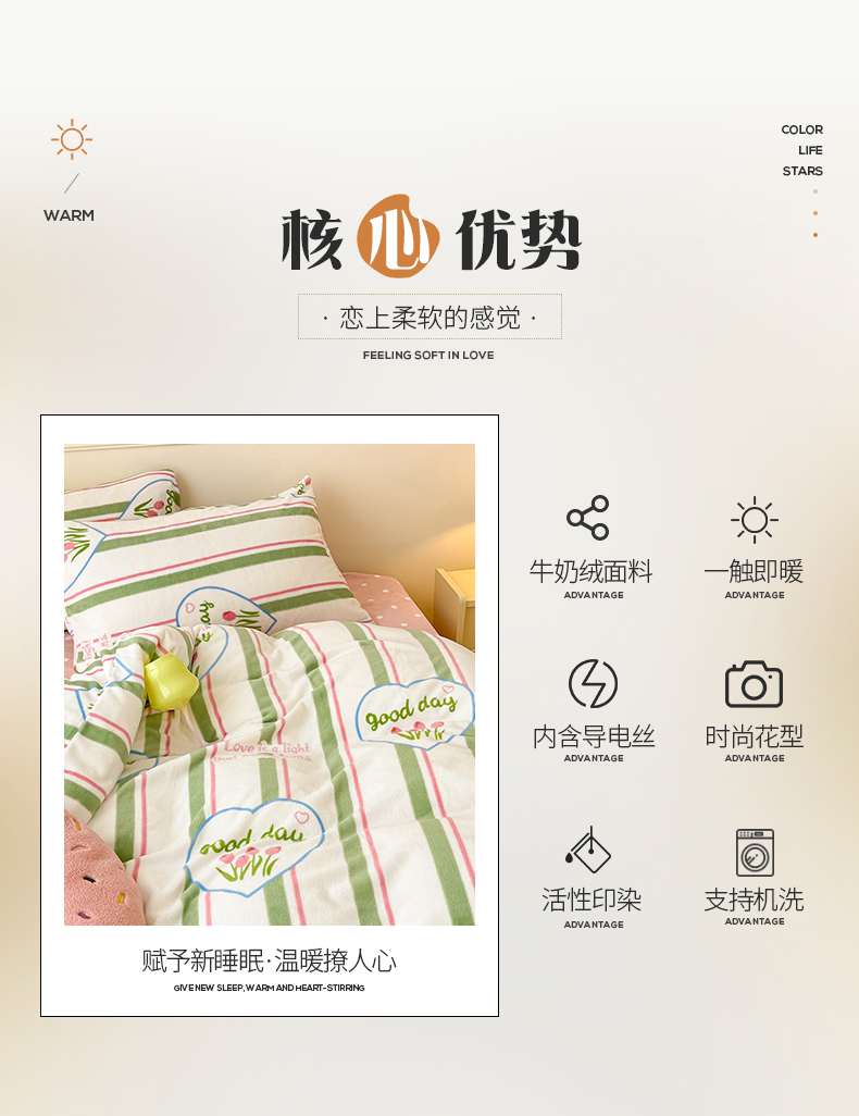 商品名称:桃子家居 2023新款ins韩系简约卡通奶油小清新加厚牛奶绒系列四件套 绒-莱茵