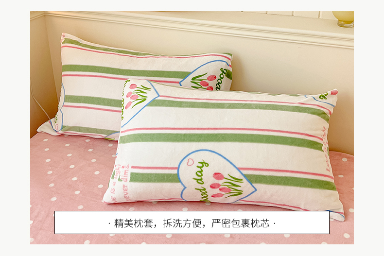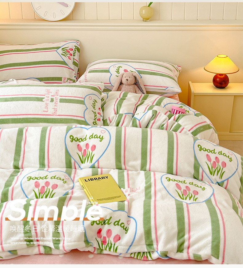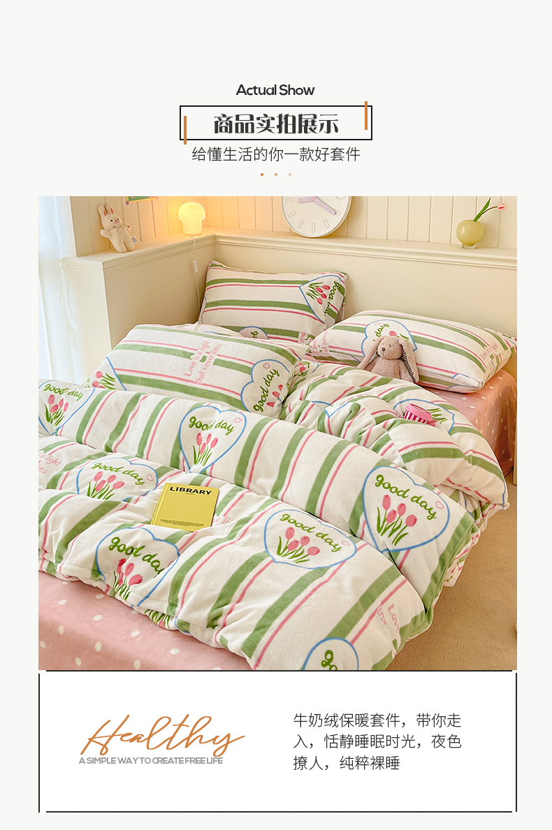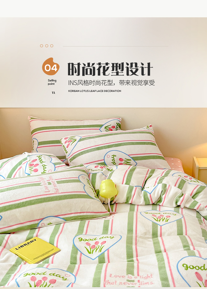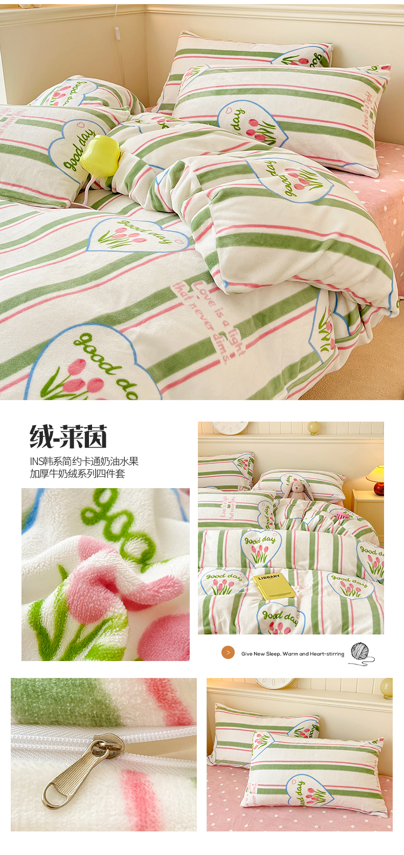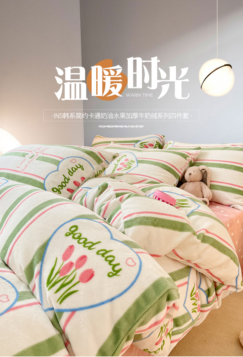 桃子家居 2023新款ins韩系简约卡通奶油小清新加厚牛奶绒系列四件套 绒-莱茵