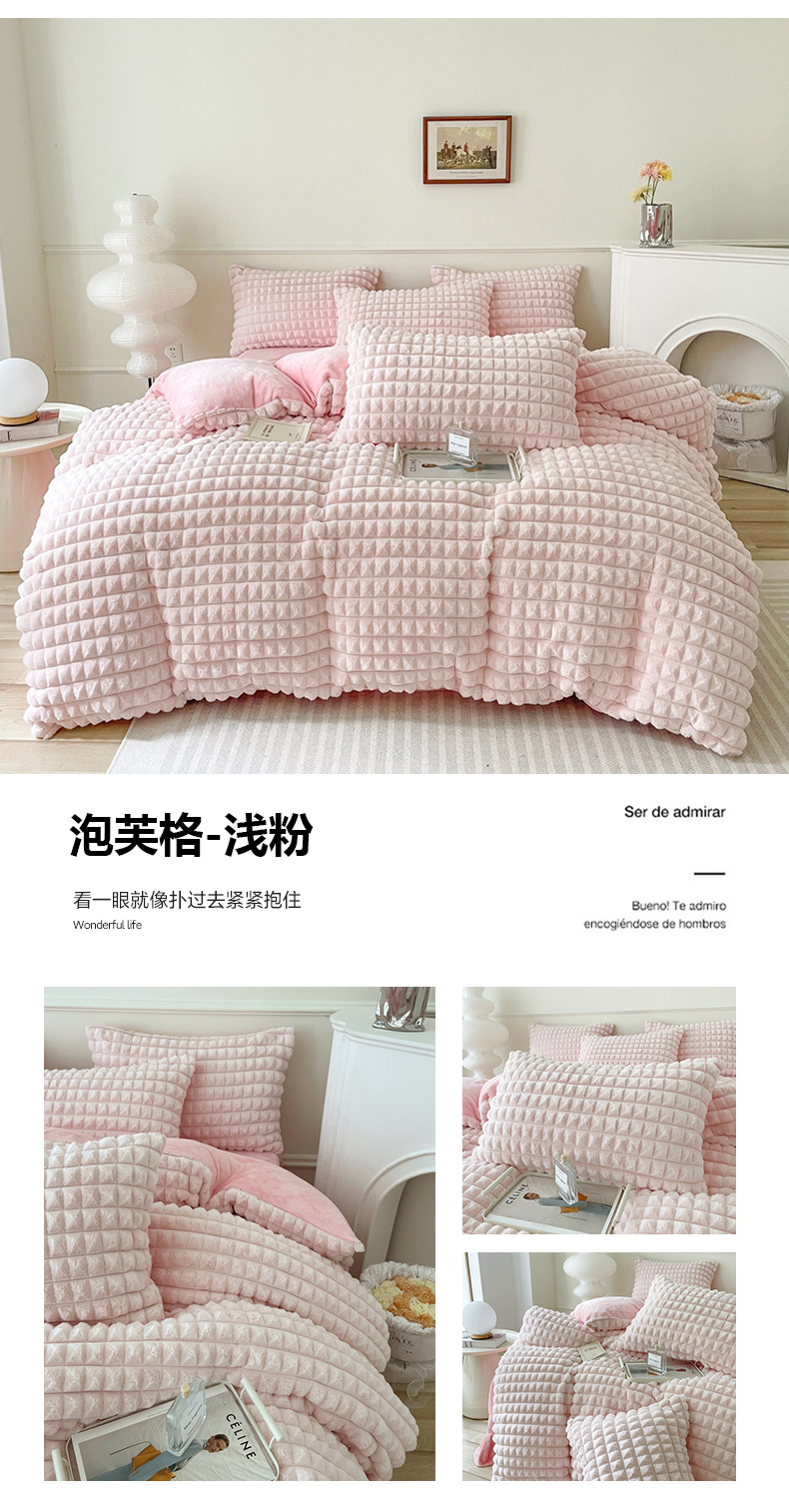 商品名称:喜梦缘 2025新款A类兔毛绒四件套 泡芙格-浅粉