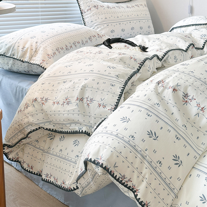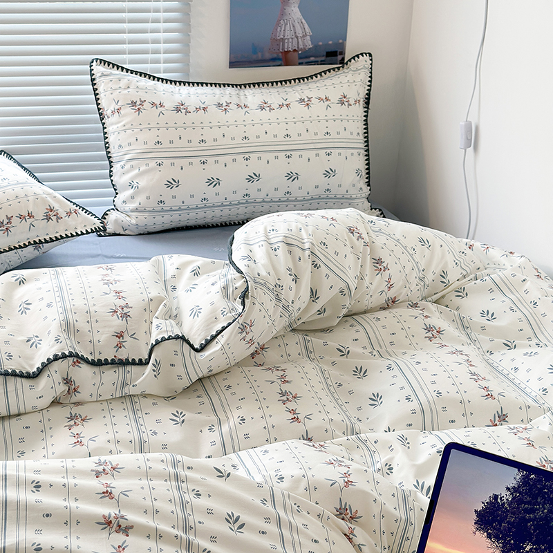 商品名称:2023新款全棉印花贝壳三角针四件套 蓝色风信