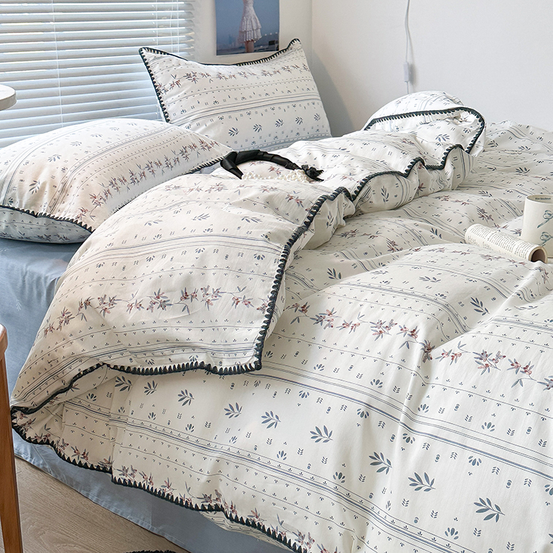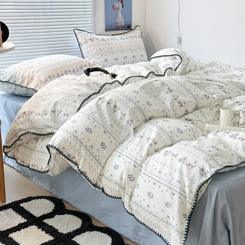 2023新款全棉印花贝壳三角针四件套 蓝色风信