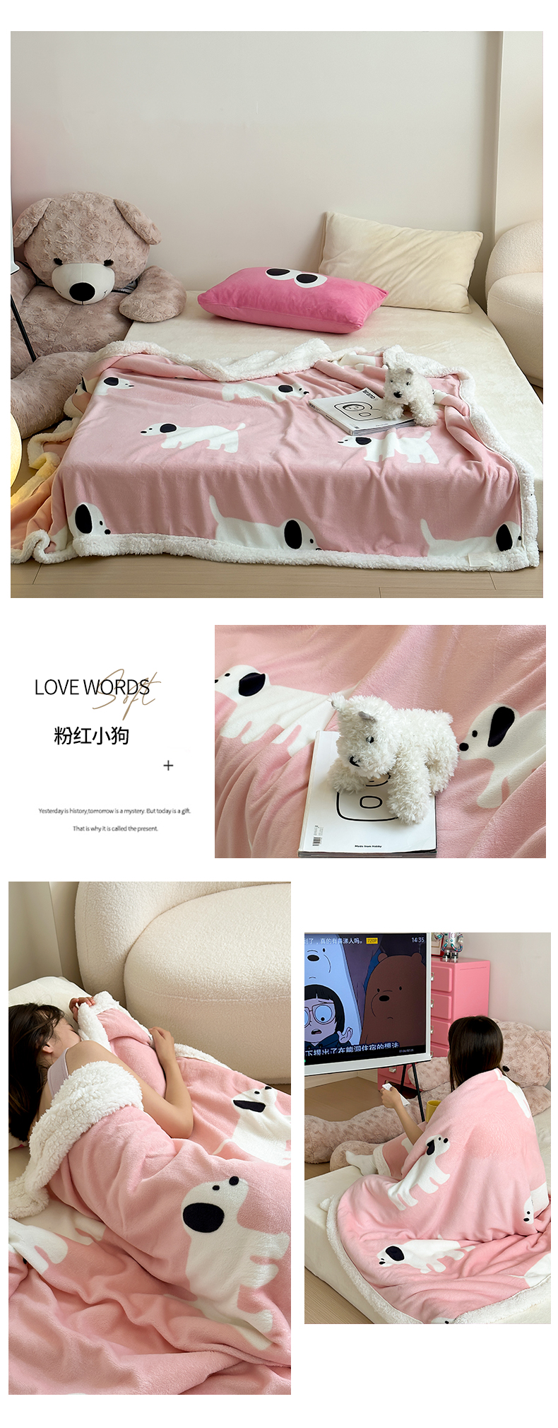 商品名称:桃喜 2024秋冬新品羊羔绒毛毯 粉红小狗