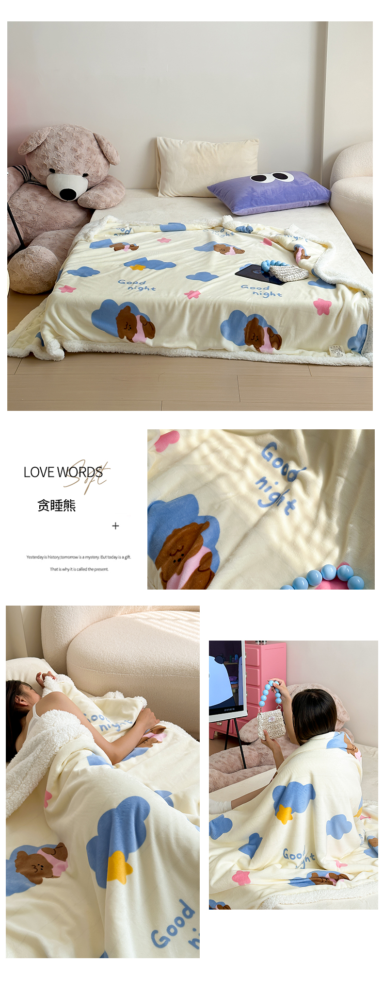 桃喜 2024秋冬新品羊羔绒毛毯 贪睡熊