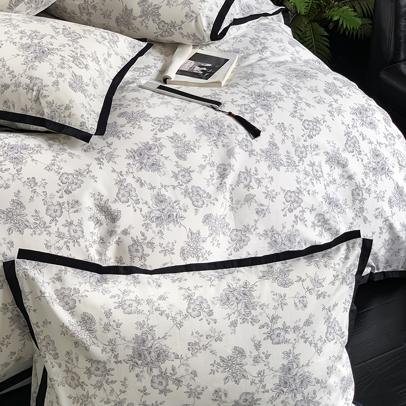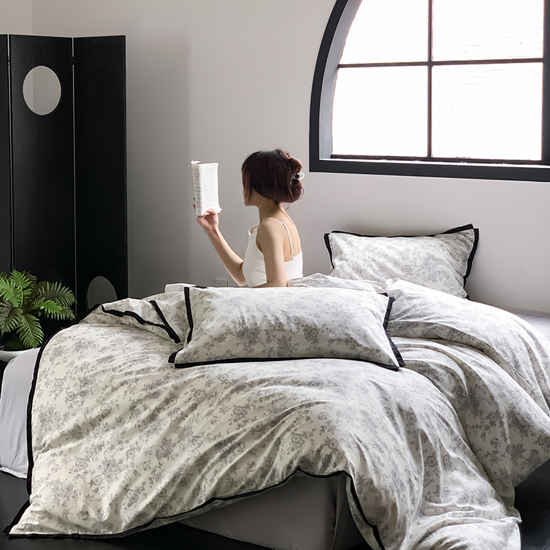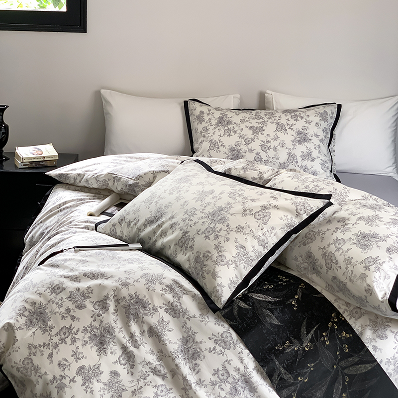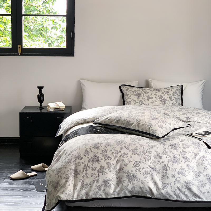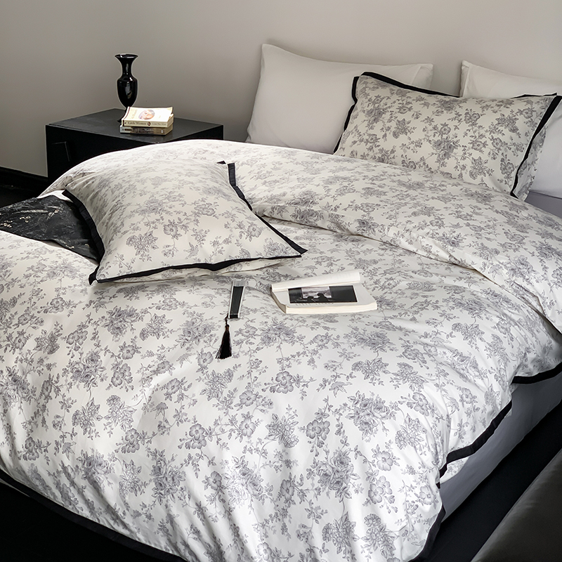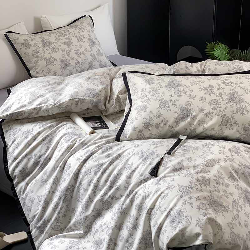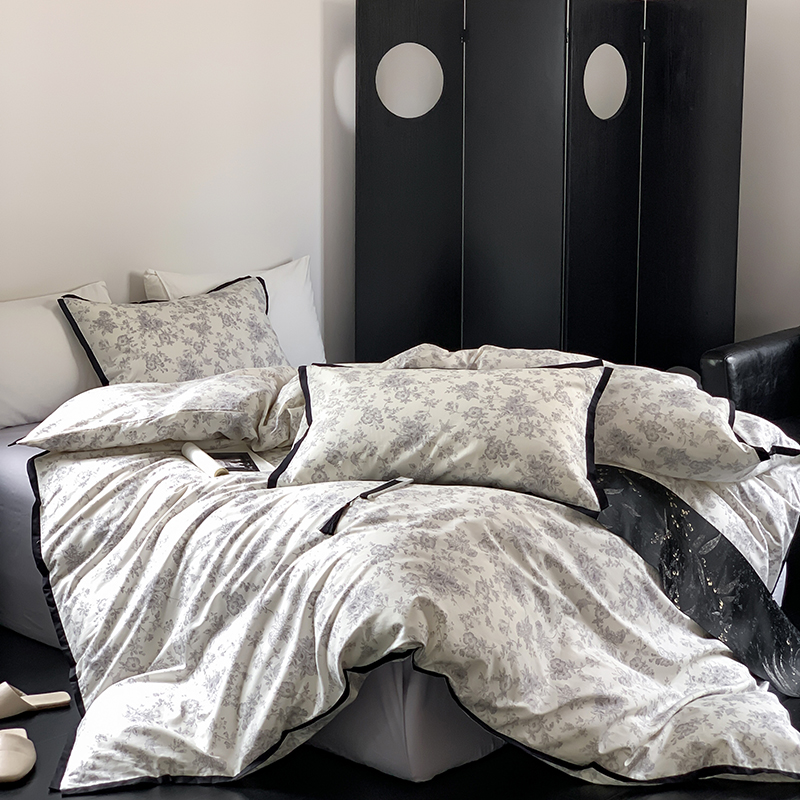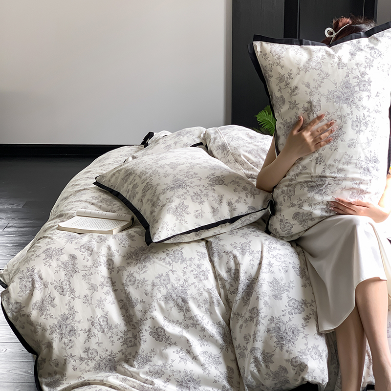 昔可家纺 2023新款全棉复古风黑花边四件套(风格一) 水墨