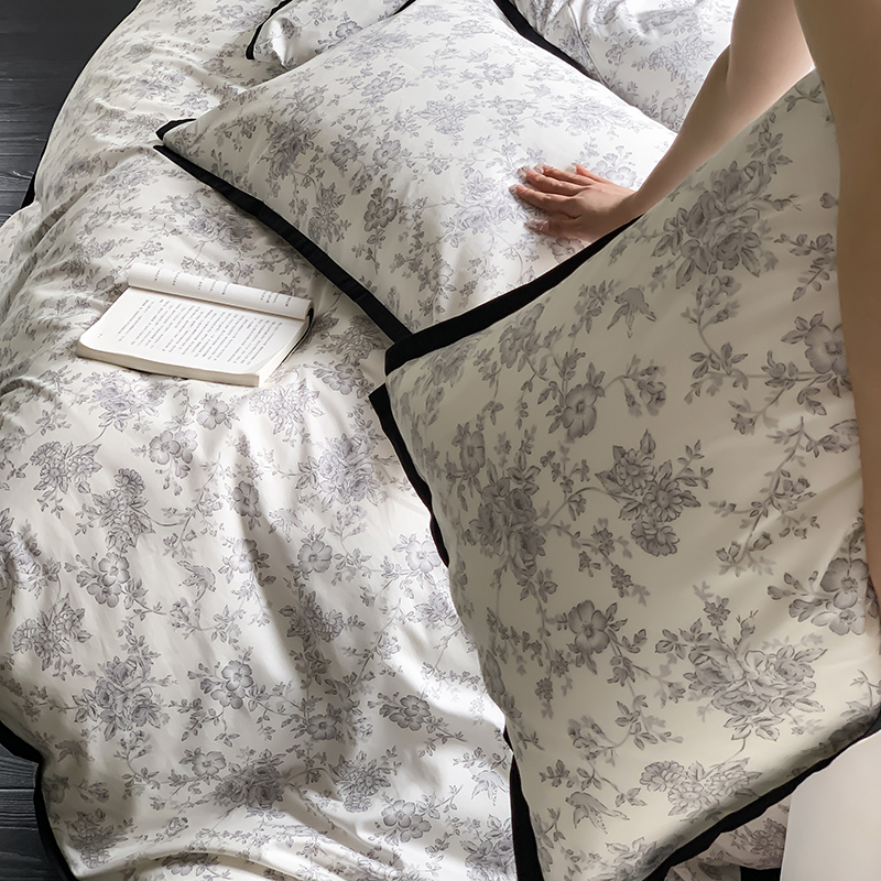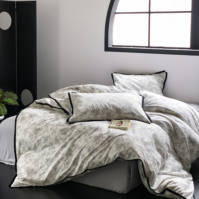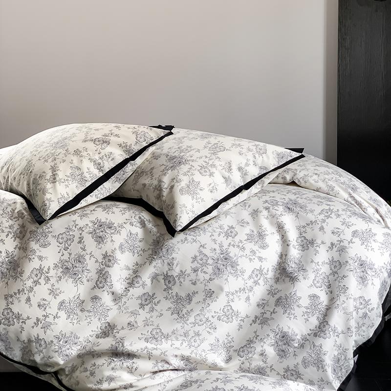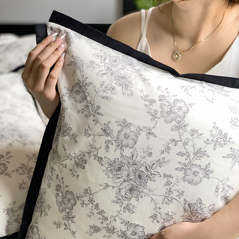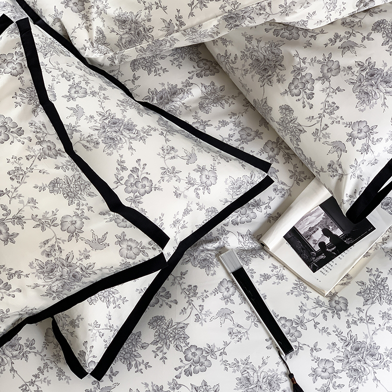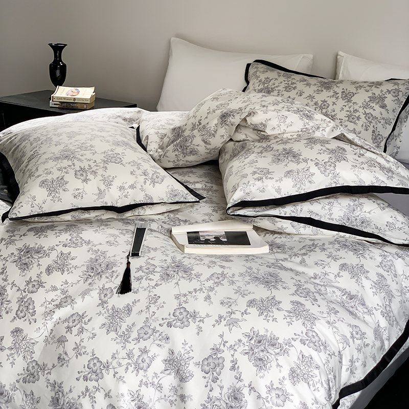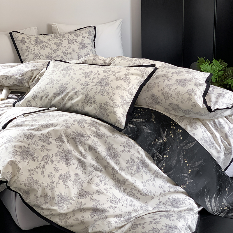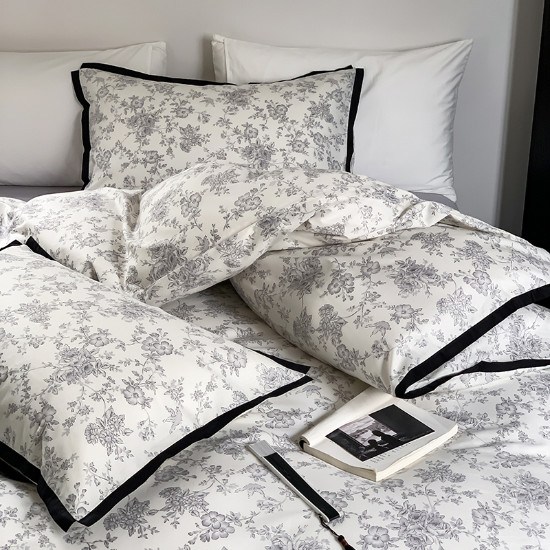 昔可家纺 2023新款全棉复古风黑花边四件套(风格一) 水墨