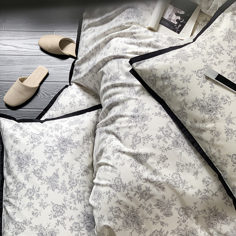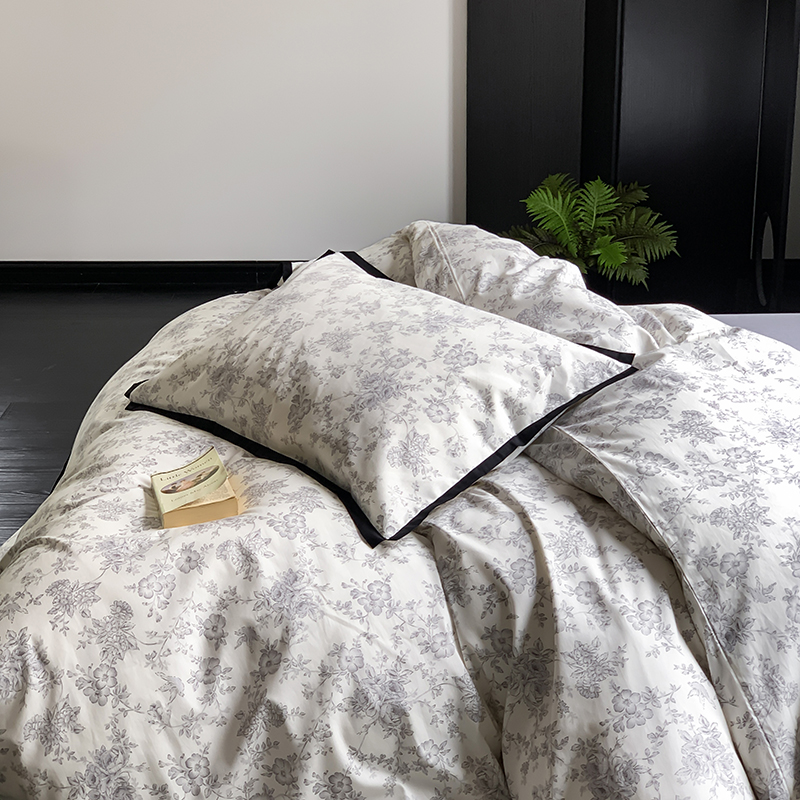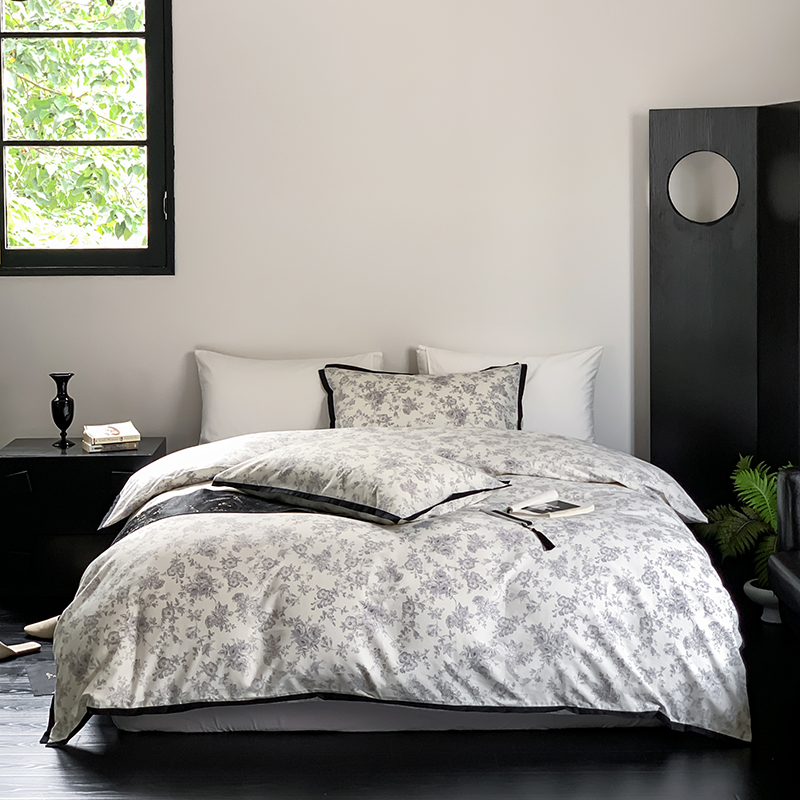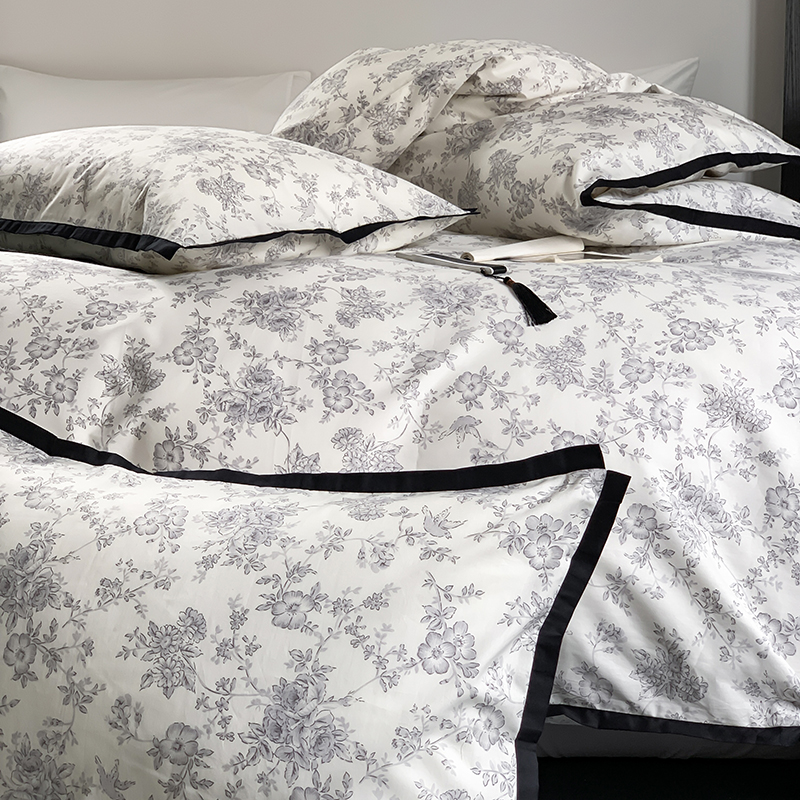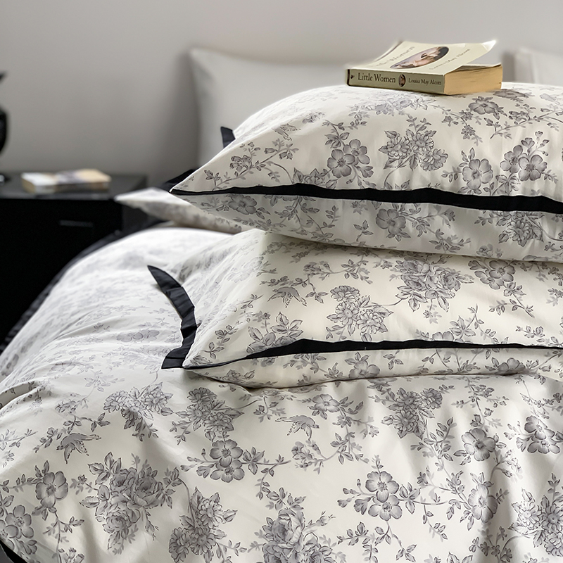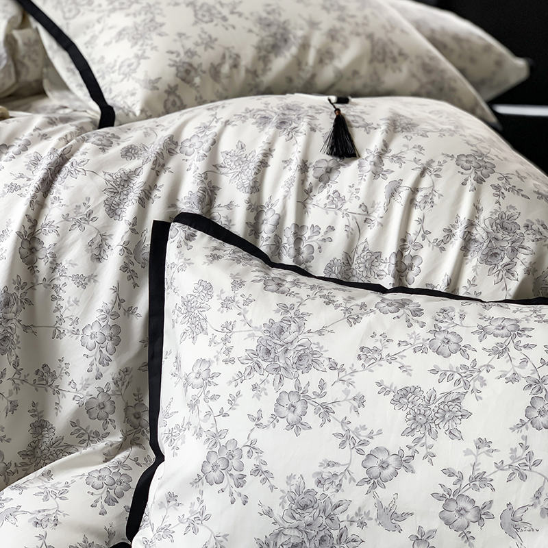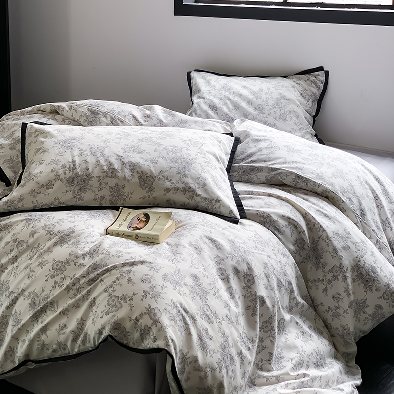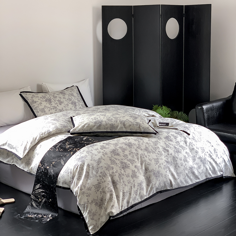 昔可家纺 2023新款全棉复古风黑花边四件套(风格一) 水墨