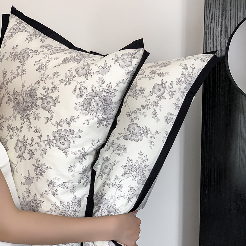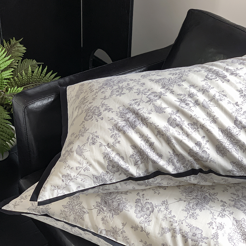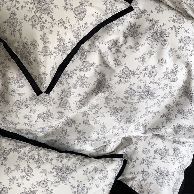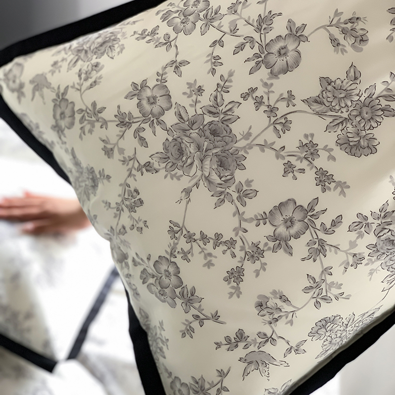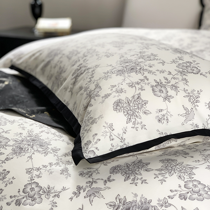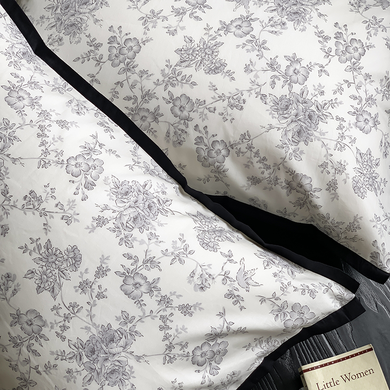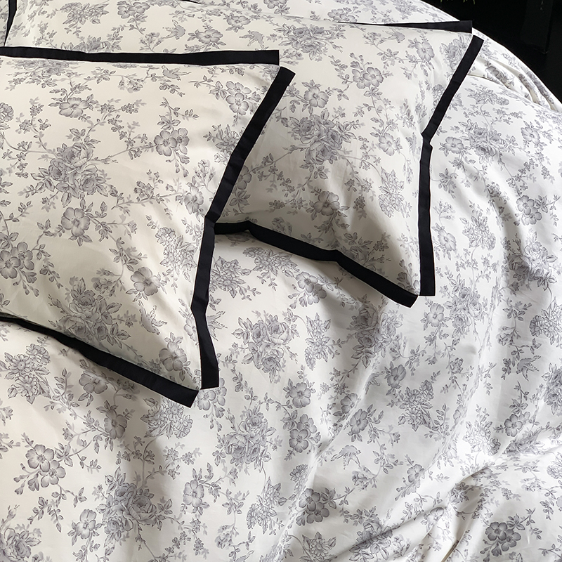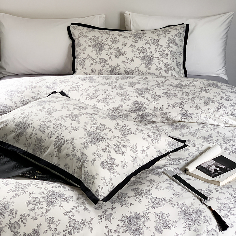 昔可家纺 2023新款全棉复古风黑花边四件套(风格一) 水墨