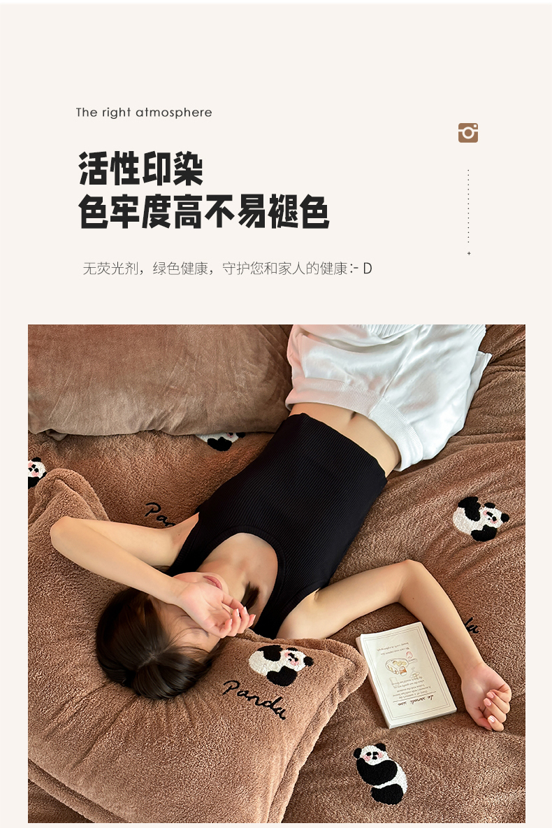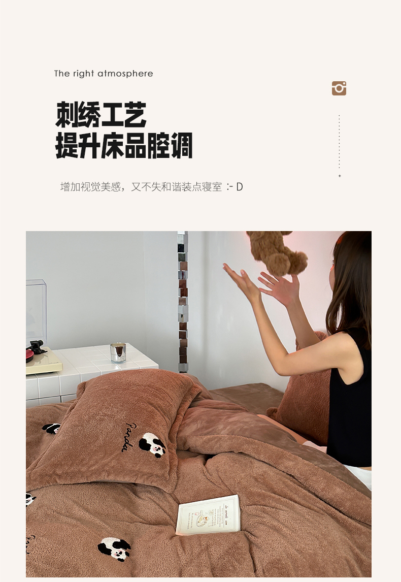 商品名称:萝莉家纺 2023新款冬季加厚软绵绵的泰迪绒美丽绒毛巾绣牛奶绒四件套 熊猫咖