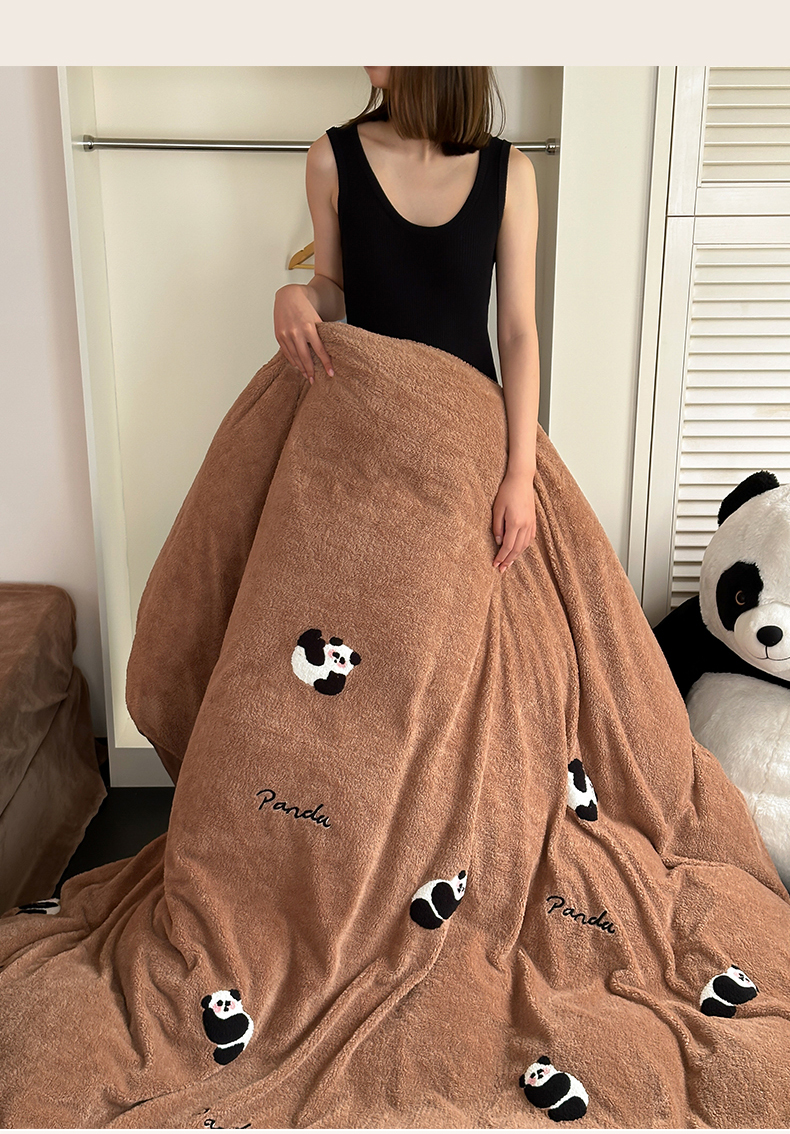 萝莉家纺 2023新款冬季加厚软绵绵的泰迪绒美丽绒毛巾绣牛奶绒四件套 熊猫咖
