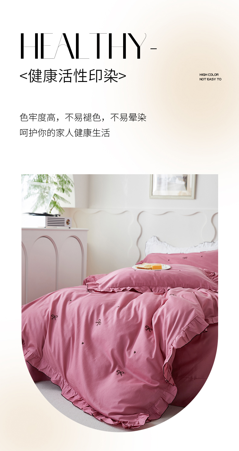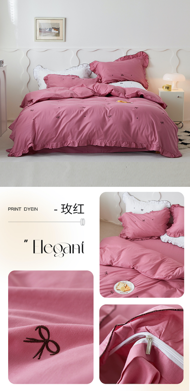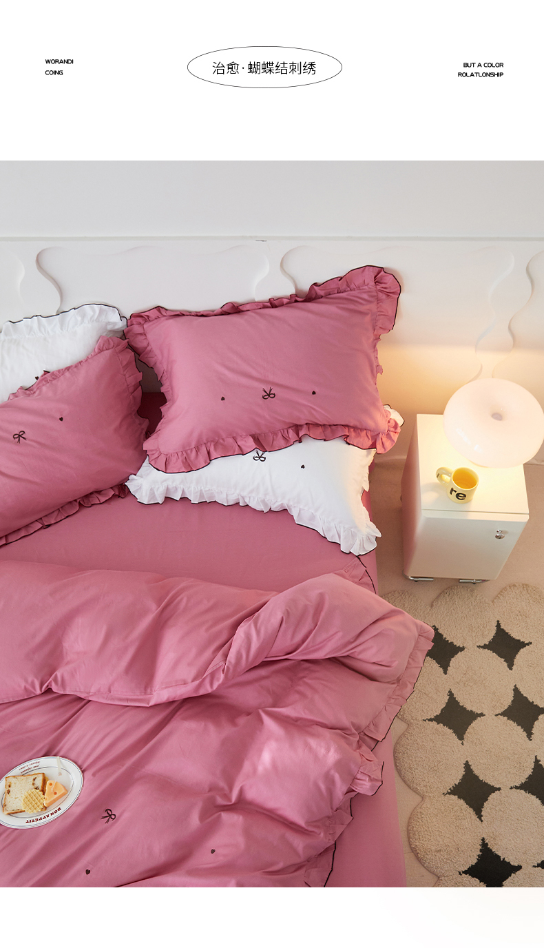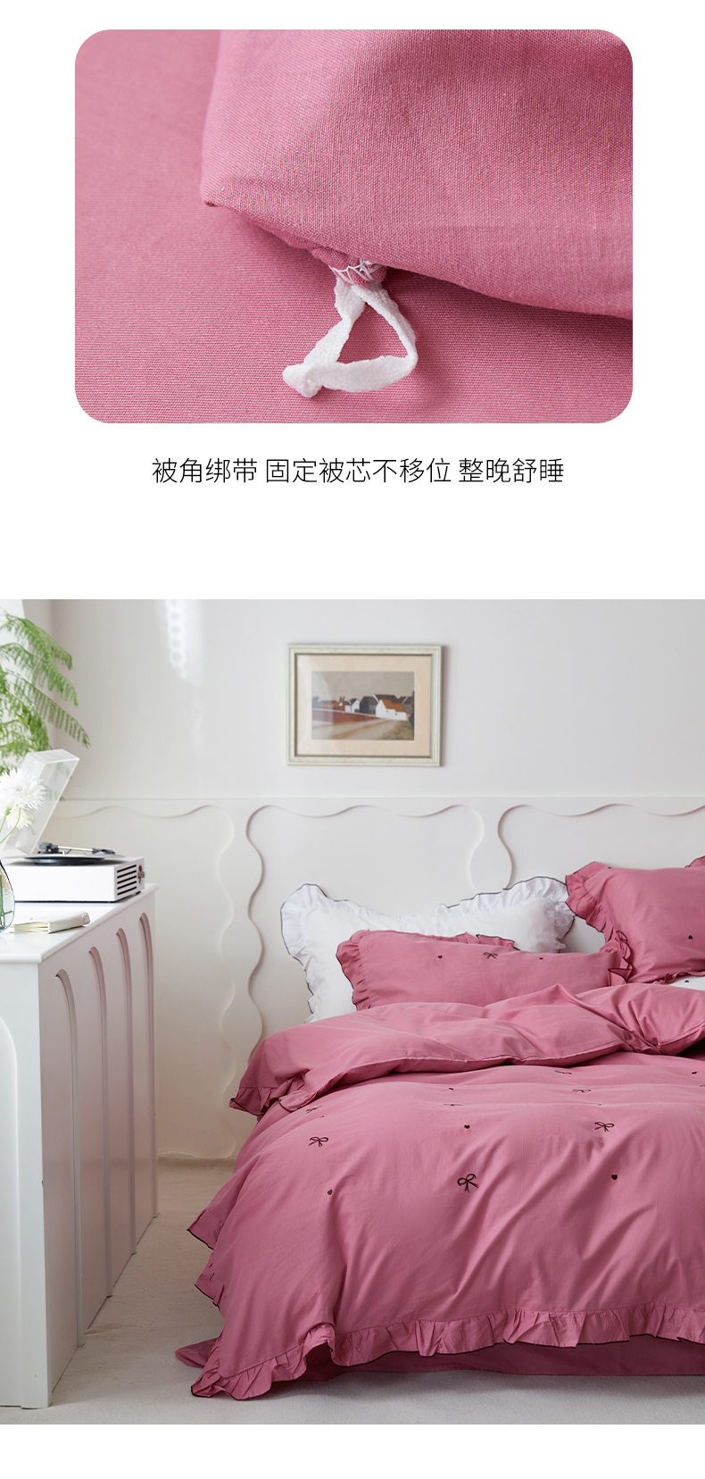 (总)梦可莱 2024新款亲肤刺绣荷叶边四件套-心灵迷恋,豆沙,奶油粉,奶油黄,牛油果绿,清新绿,香芋紫