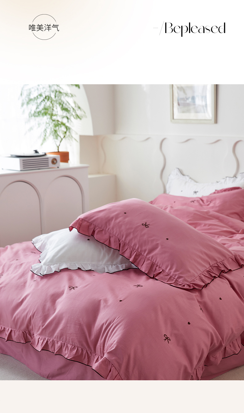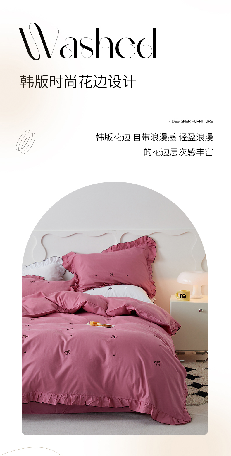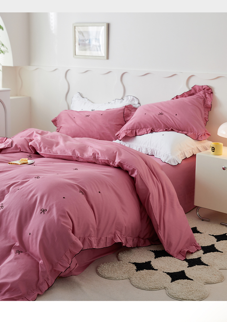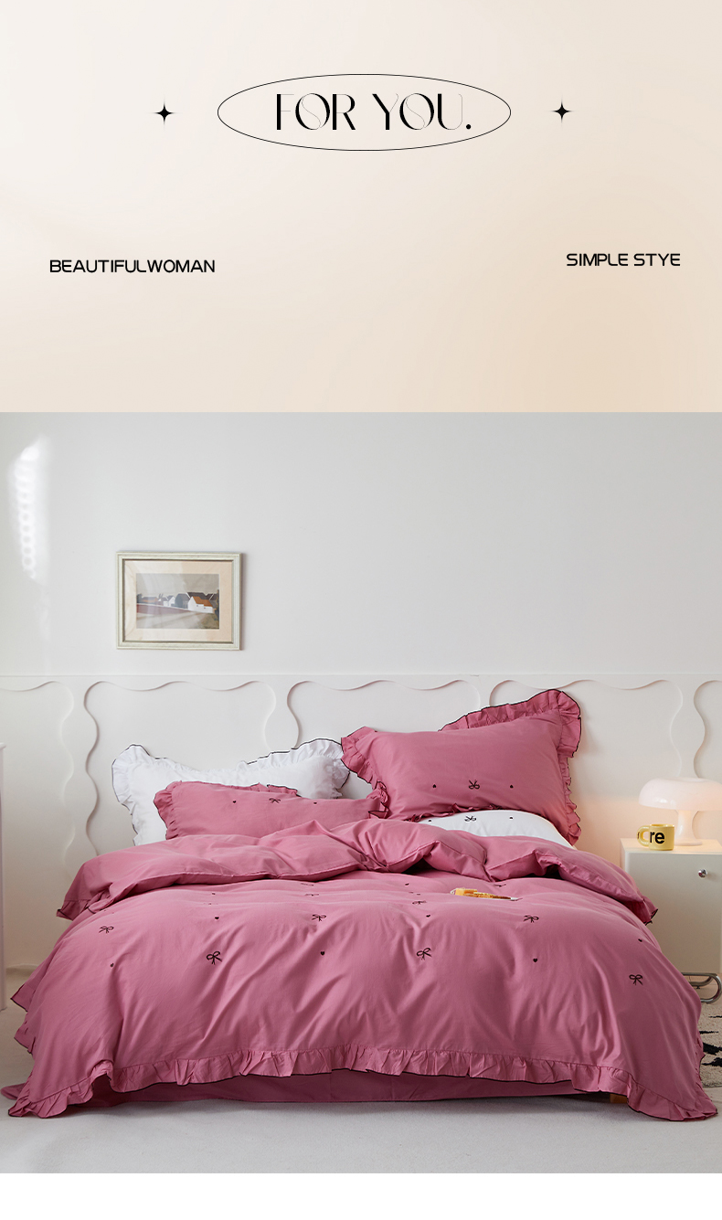 (总)梦可莱 2024新款亲肤刺绣荷叶边四件套-心灵迷恋,豆沙,奶油粉,奶油黄,牛油果绿,清新绿,香芋紫