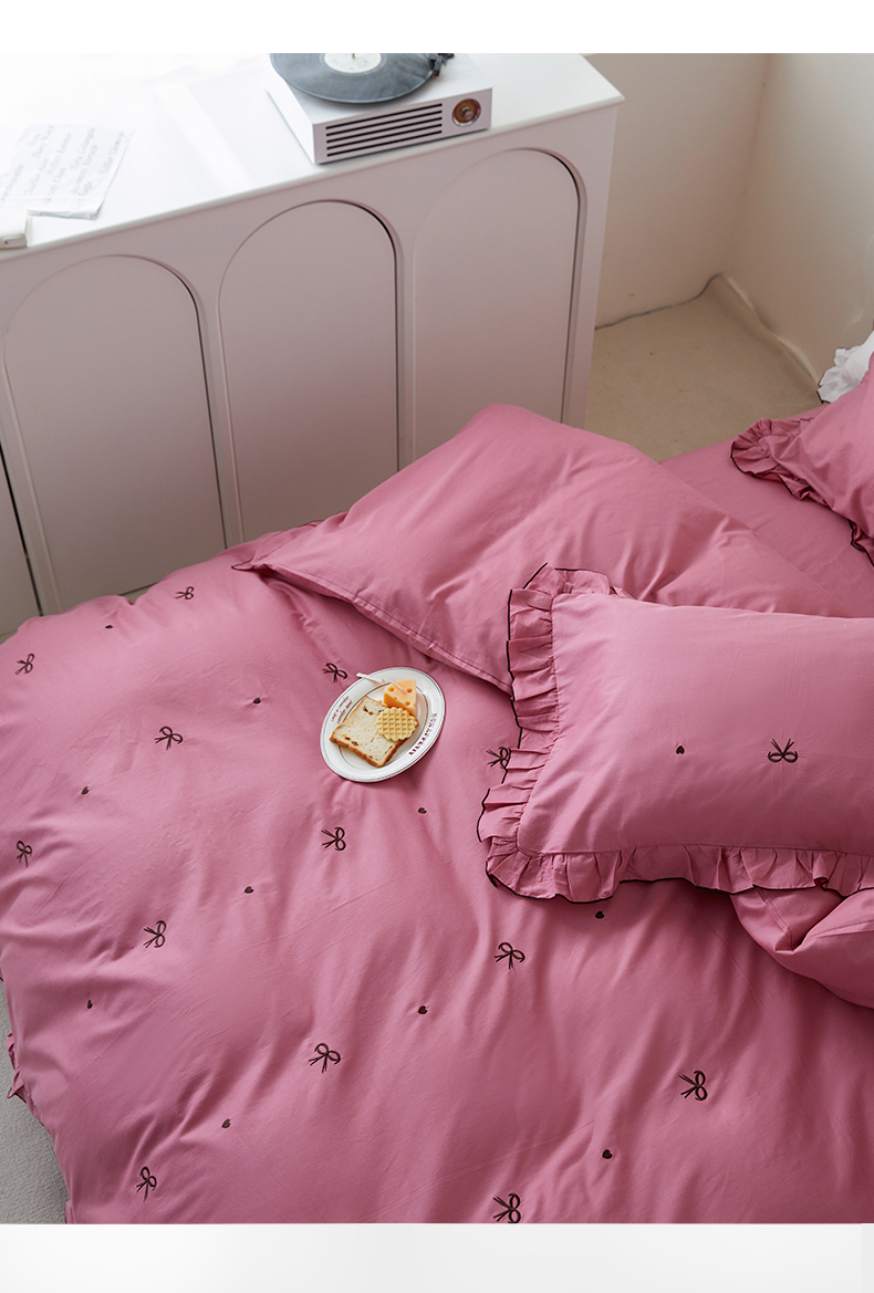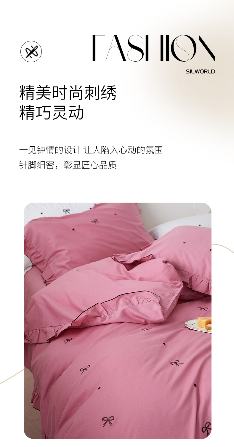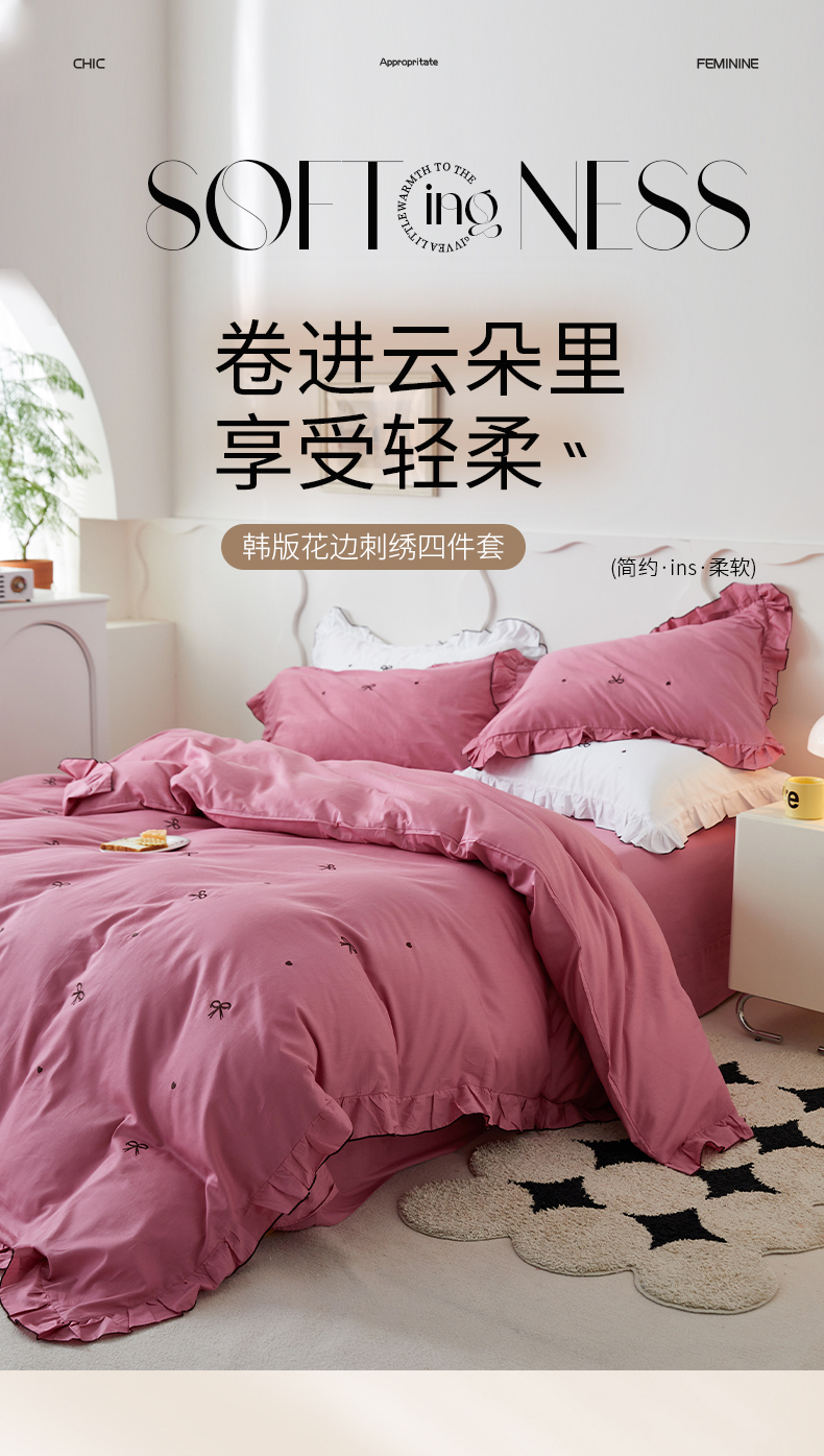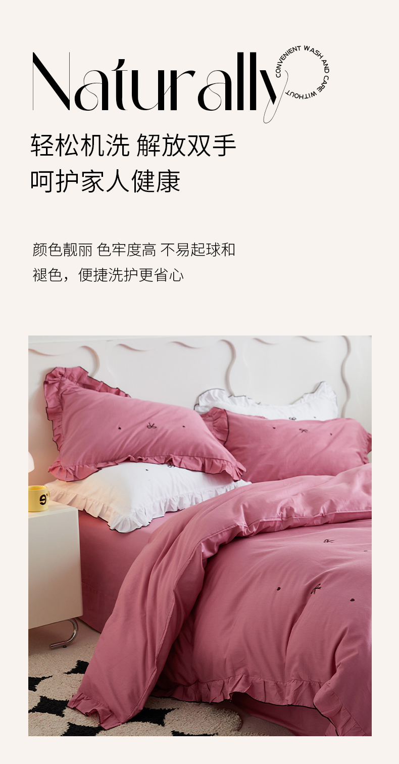 (总)梦可莱 2024新款亲肤刺绣荷叶边四件套-心灵迷恋,豆沙,奶油粉,奶油黄,牛油果绿,清新绿,香芋紫