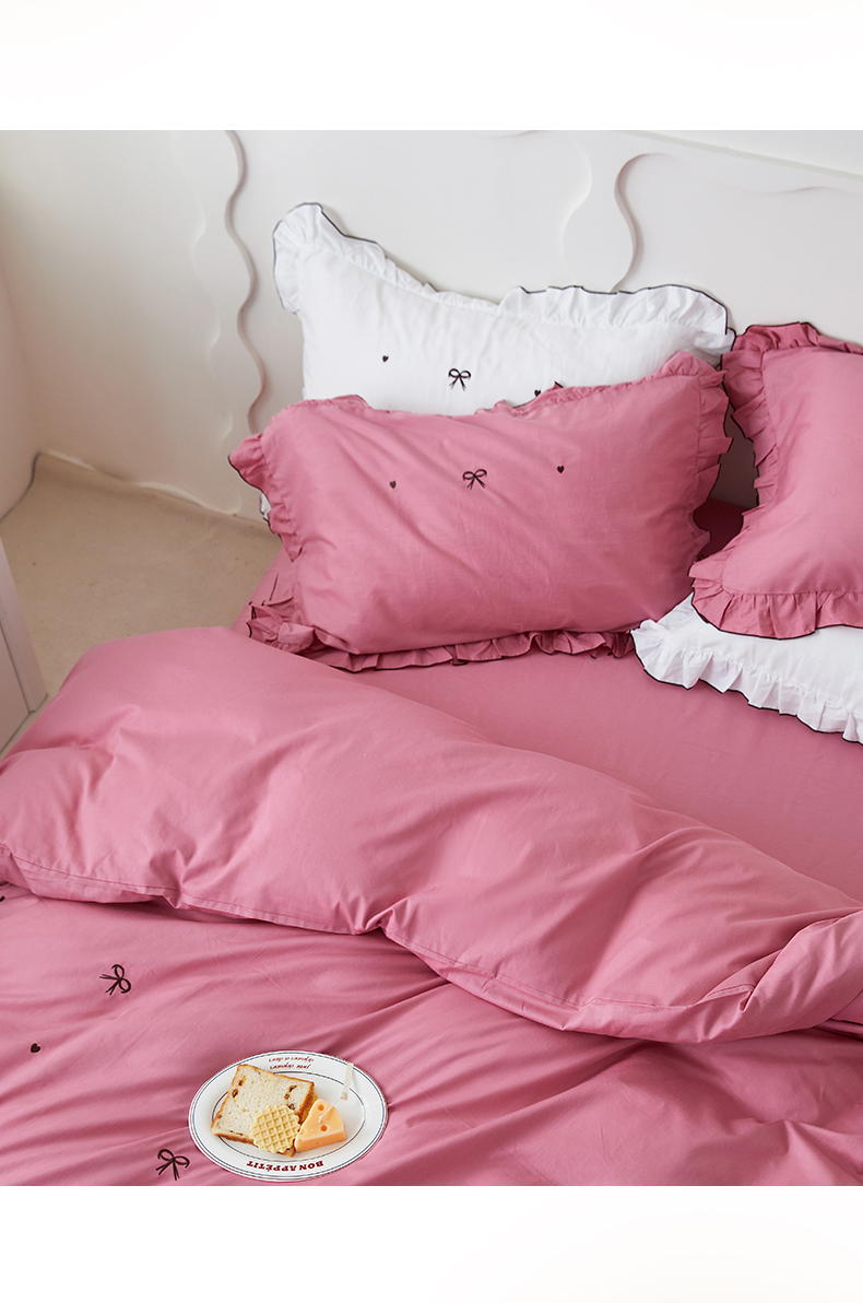 商品名称:梦可莱家居 2023新款韩版花边刺绣洛丽塔四件套 洛丽塔-玫红色
