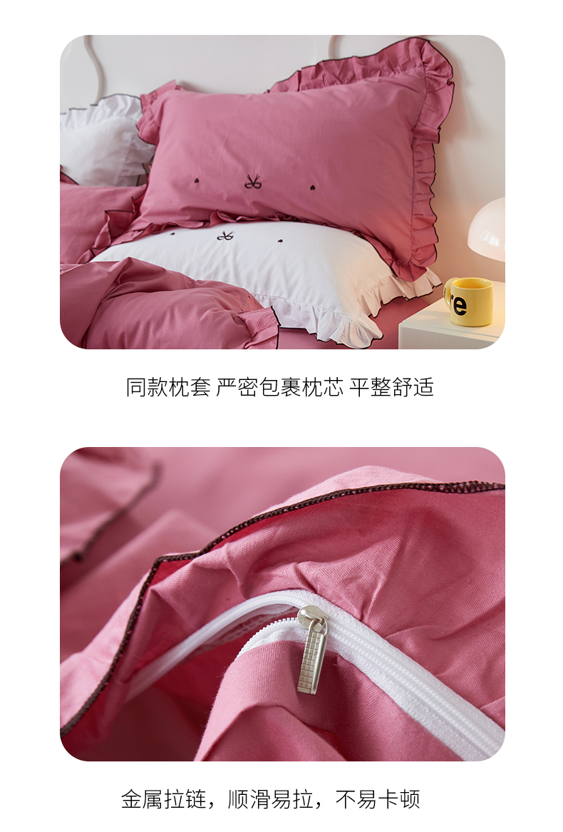 梦可莱家居 2023新款韩版花边刺绣洛丽塔四件套 洛丽塔-玫红色