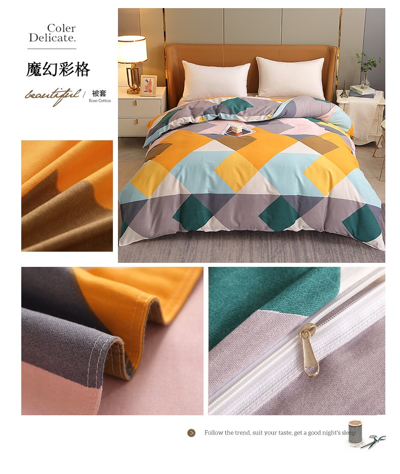 晶缦 2023新款典雅系全棉活性磨毛多规格单品四件套-被套 魔幻彩格