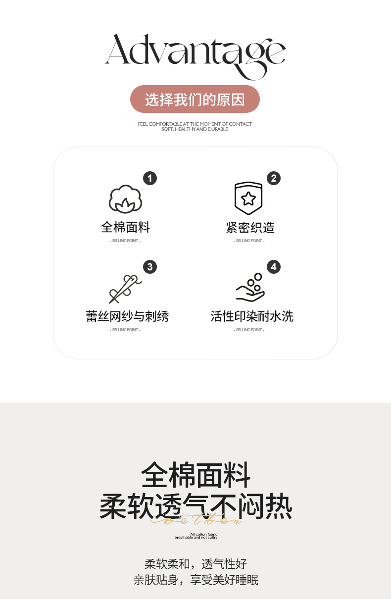 商品名称:丝印良品 2023新款秋冬保暖60S全棉蕾丝刺绣丽丽贝尔系列四件套 玫瑰粉