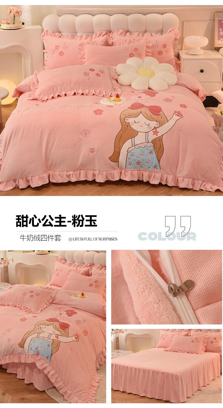 当前位置: 91家纺网 > 商品网购 > 床品套件 > 四件套 > 牛奶绒四件套 > 欧冠 2023新款高档贴布绣甜心公主牛奶绒四件套 甜心公主-粉玉