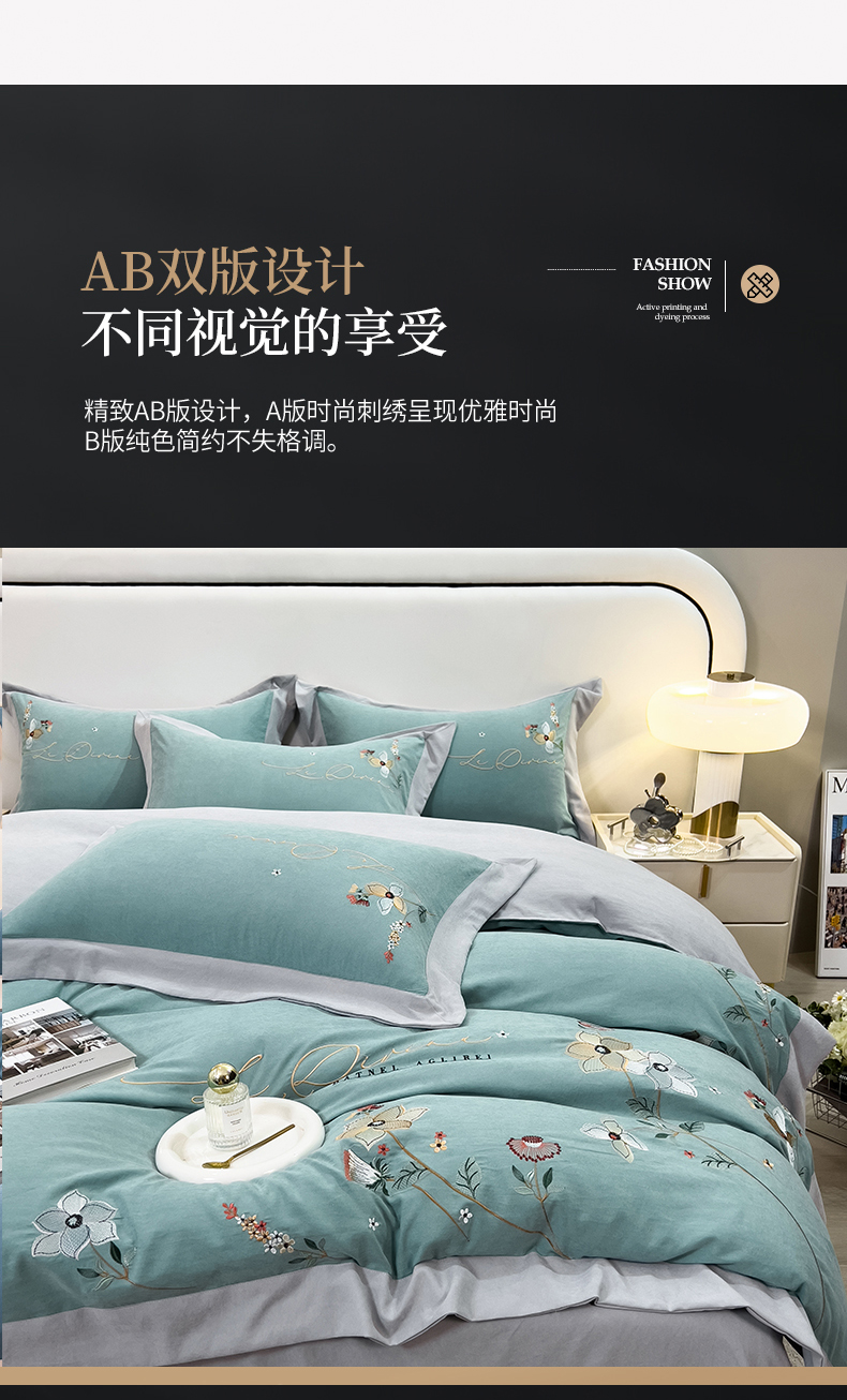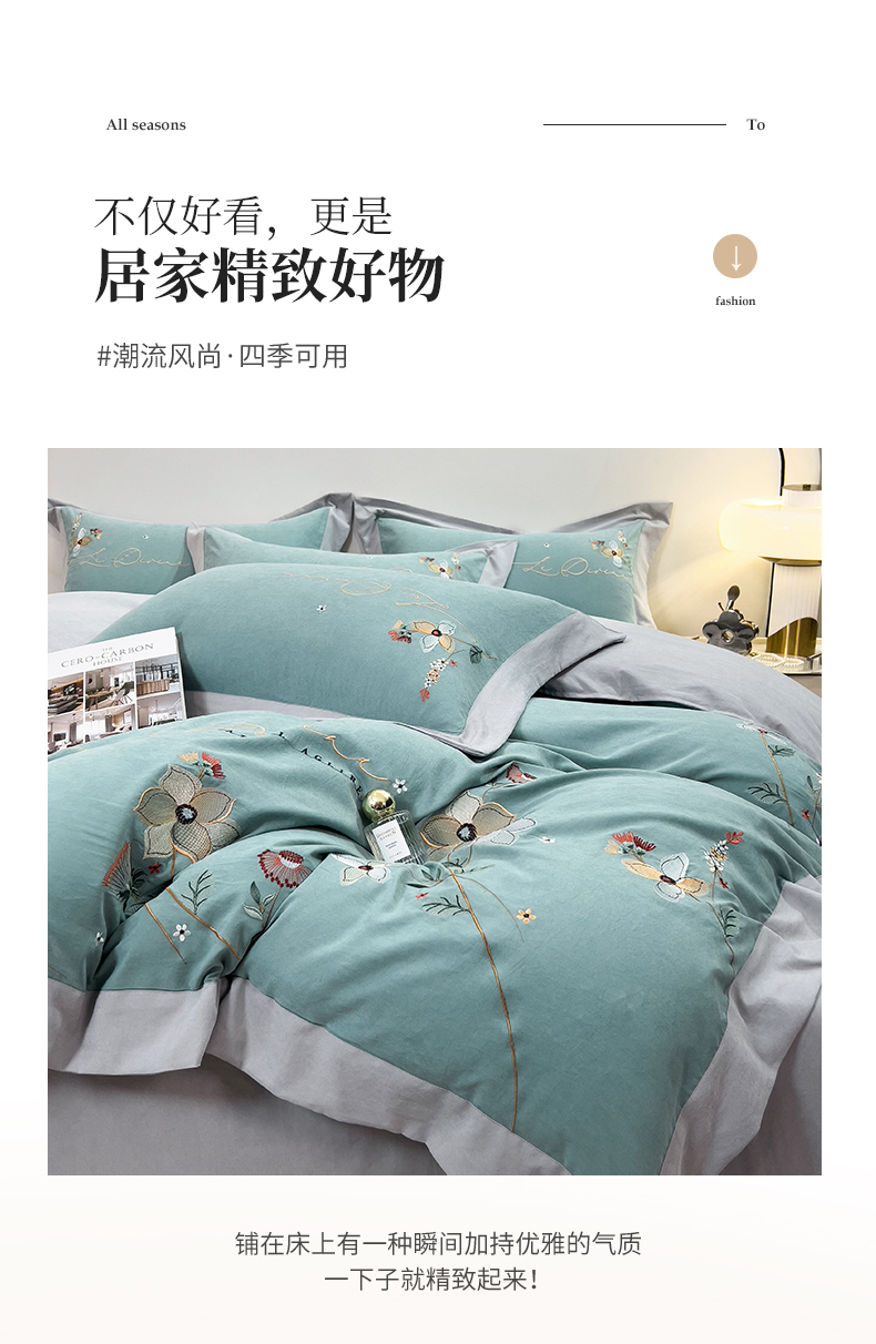 丝印良品 2023新款秋冬保暖云锦棉刺绣宽边盛夏光年系列四件套 盛夏光年-田园绿