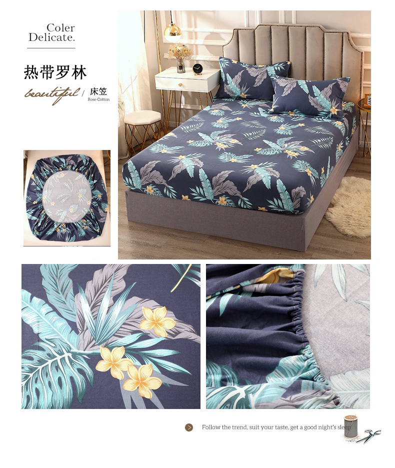 商品名称:晶缦家纺 2023新款典雅系全棉活性磨毛多规格单品床笠 热带罗林
